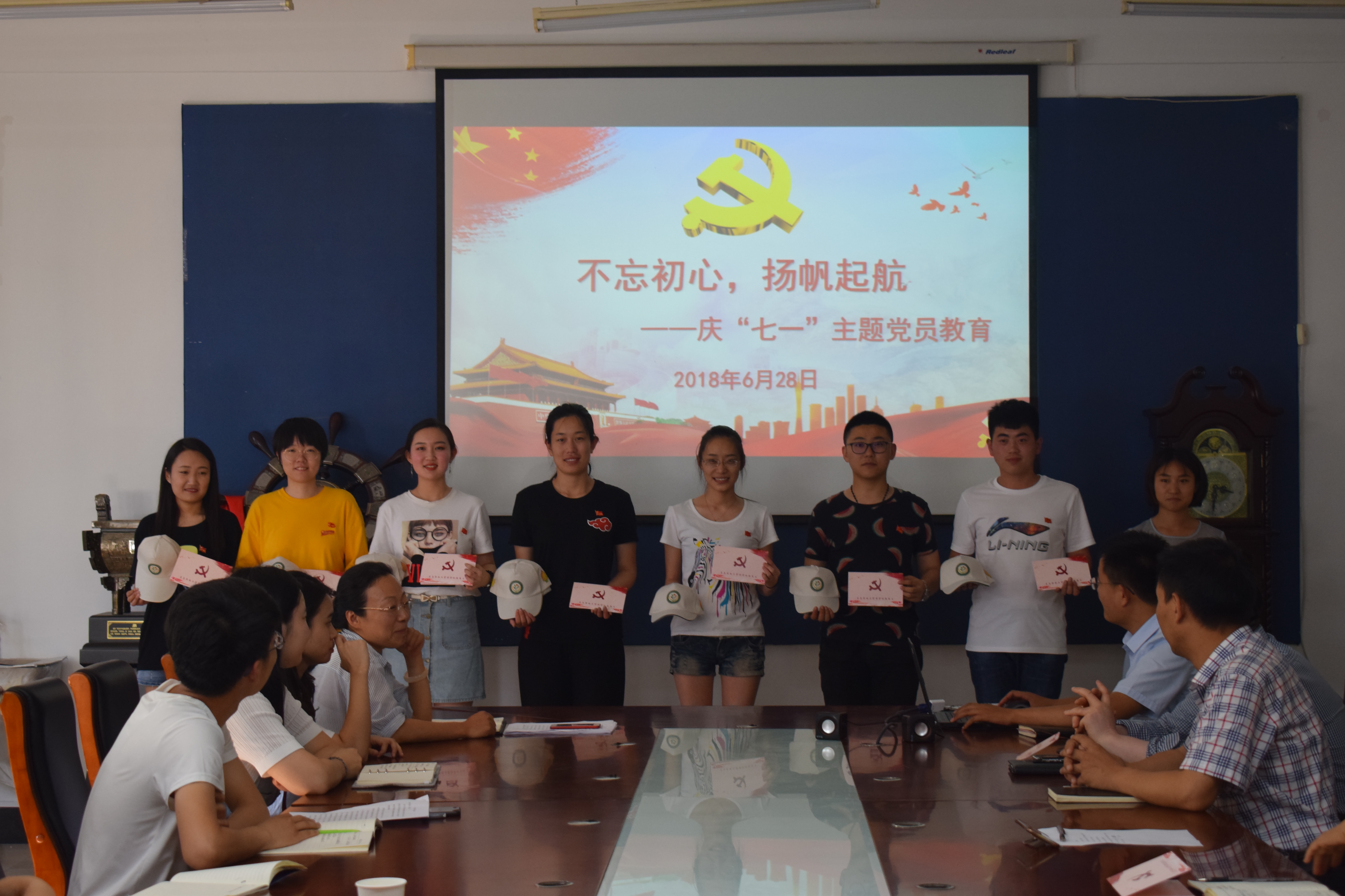 活动开始,全体起立,奏唱国歌。首先,学生党员陈芊如代表全体毕业生党员发言,她对自己四年的大学生活进行了总结,对母校表达了感谢与祝福,对学弟学妹赠予寄语与希望。随后,党员教师邹晓霞代表全体教工党员发言,对即将踏上新征程的毕业生党员表达了祝福。