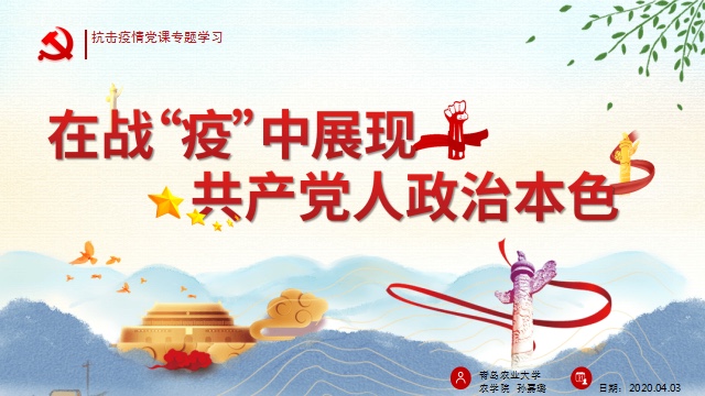 学生党员侯圣玺带领大家重温90后青年奋战在一线的感人事迹,为大家展示了新时代农科学子的担当与作为;王申童谈及家人在抗疫期间的感人举动,将灾难面前的民族脊梁与负能量现象形成对比,表达要做好党员先锋模范带头作用的思想感悟;赵砚菊带领大家学习解读了习近平总书记打赢疫情防控阻击战会议精神,告诫作为青年的我们要不懈奋斗、辛勤耕耘;陈天羽讲述为自己生在中国而感到幸福与光荣,在战疫中对爱国、敬业、诚信、善良有了更深入的理解……