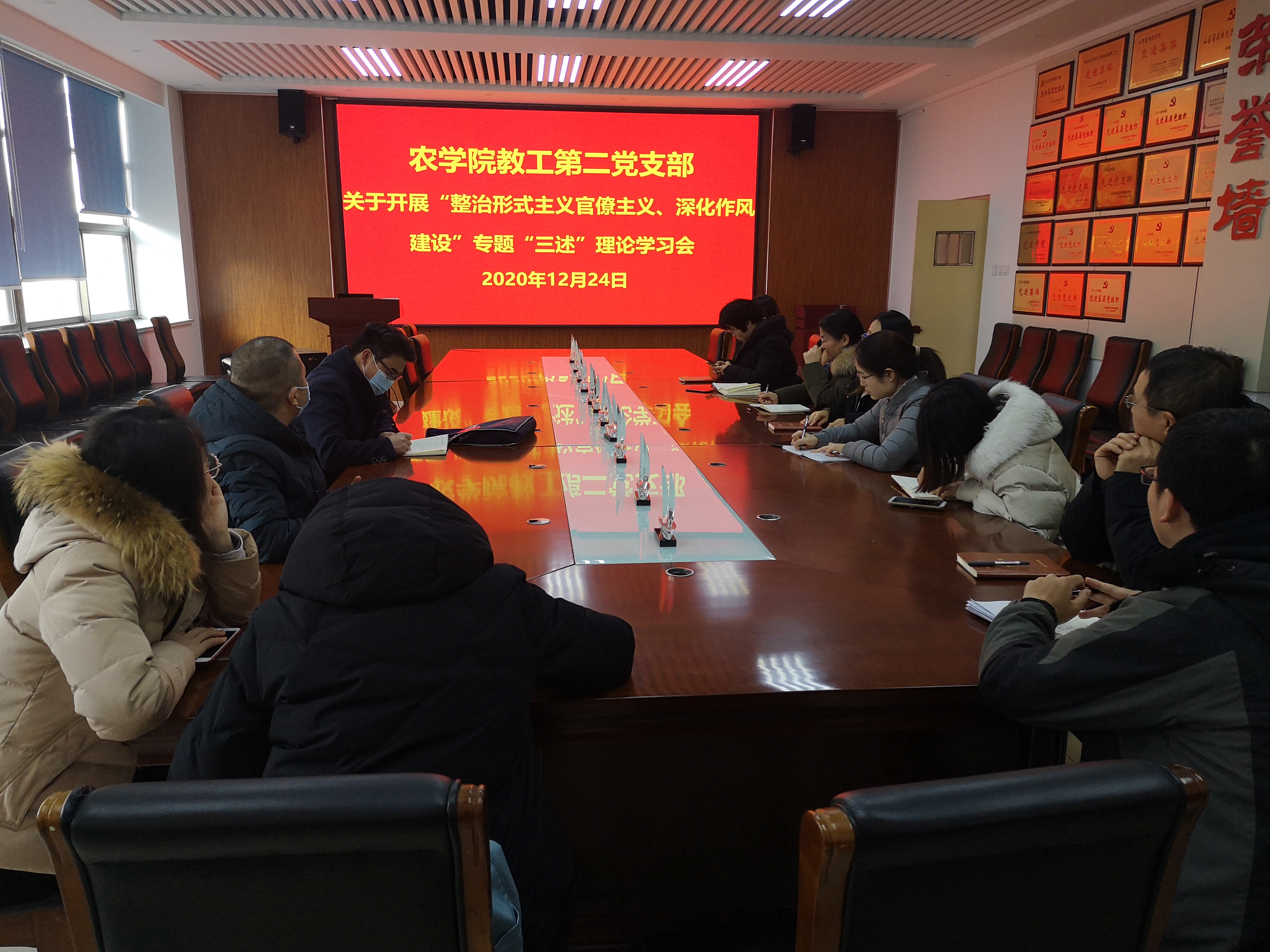 为进一步转变广大党员干部作风,确保全年工作落实落地,扎实谋划好支部明年工作,12月24日,新葡萄8883官网amg第二党支部于生物楼召开“整治形式主义官僚主义,深化作风建设”专题“三述”会议,新葡萄8883官网amg第二党支部全体党员参加。会议由第二党支部组织委员郭新梅主持。