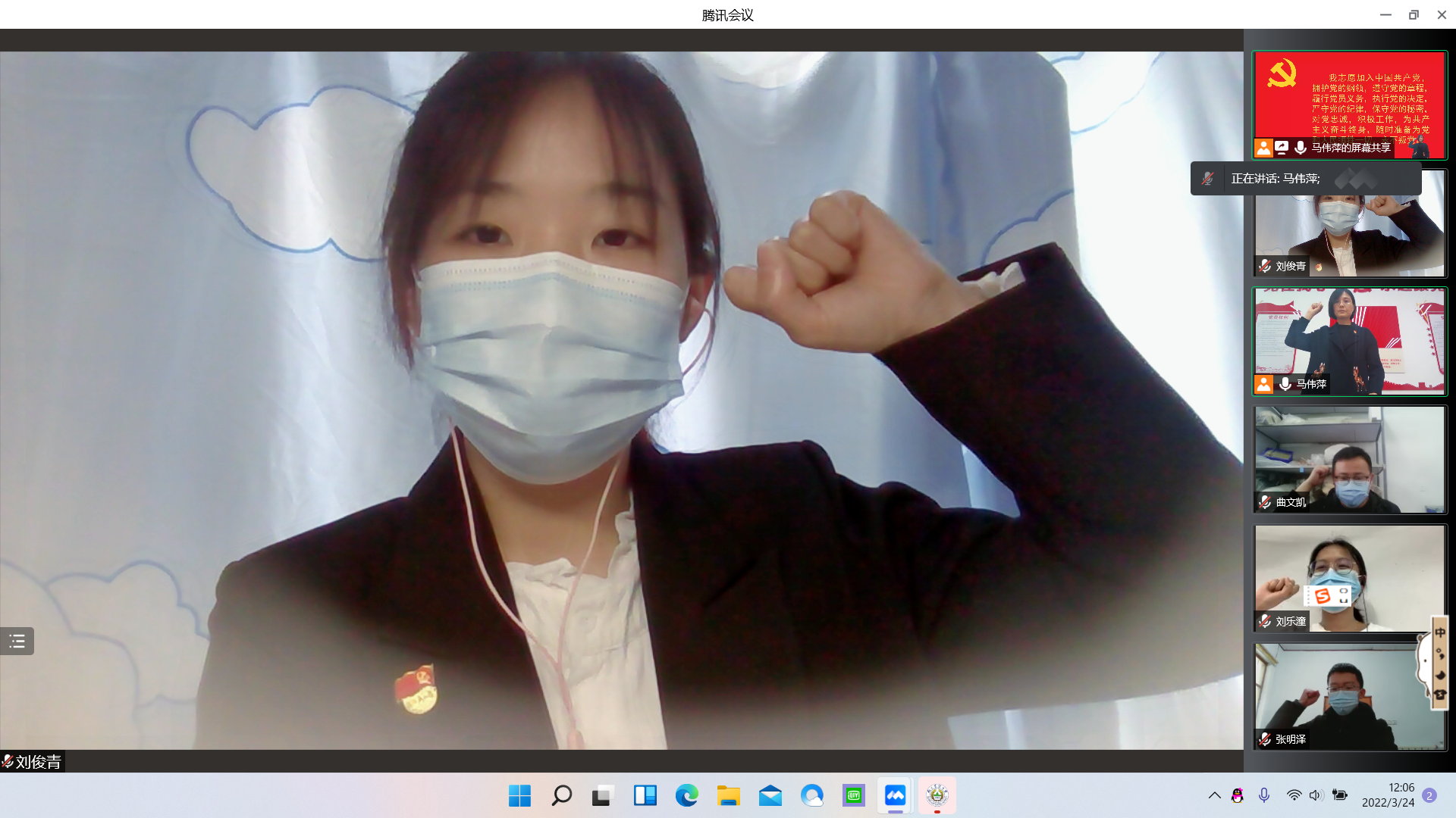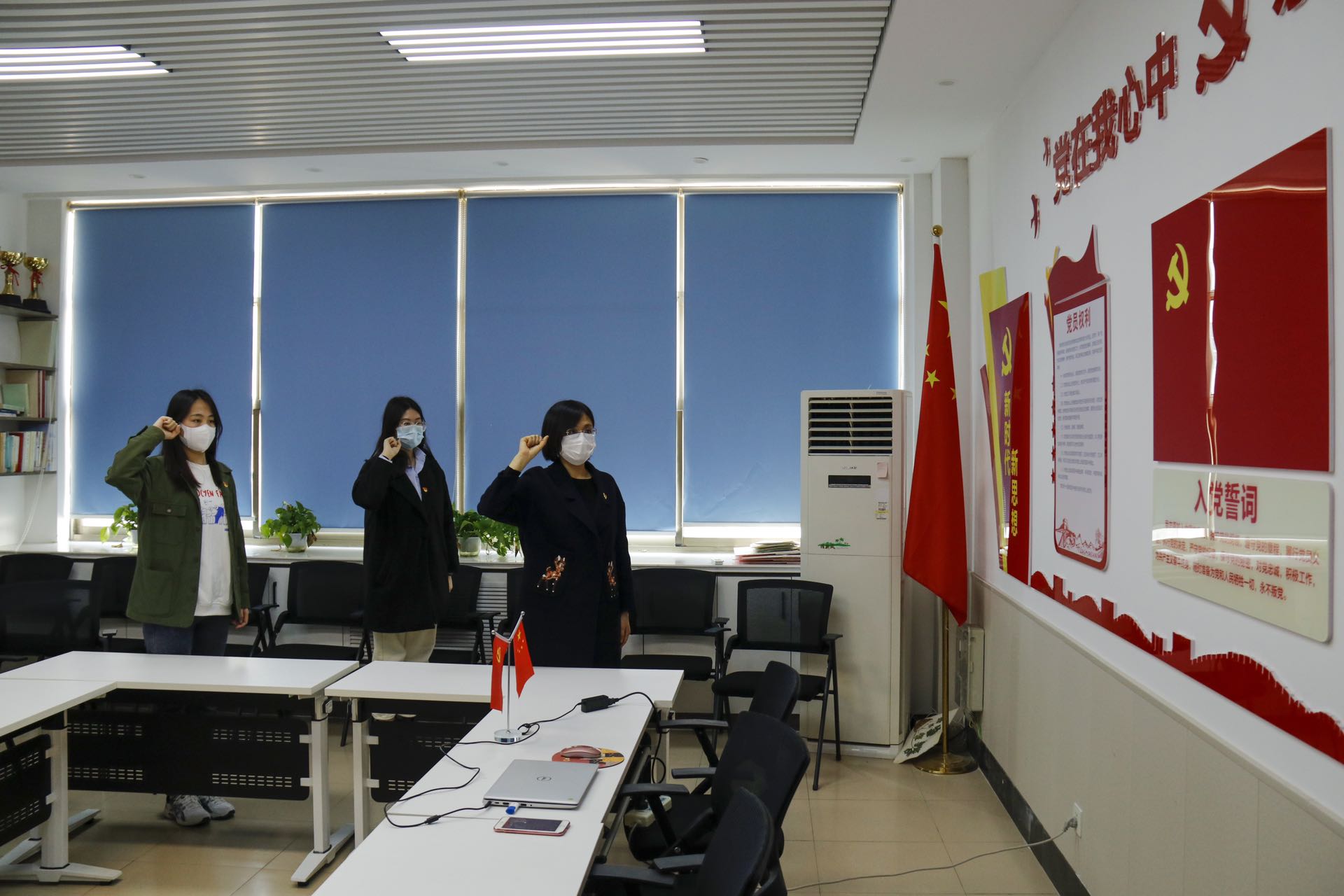 马伟萍以“我是党员我带头 疫情防控当先锋”为主题,与大家一起观看了学校战“疫”视频《微光》,重温了中共新葡萄8883官网amg委员会组织部致各级党组织和广大共产党员的动员令,并结合当前严峻的疫情防控形势和亲身经历体会,讲述了留守校园的广大党员干部、师生员工参与疫情防控工作涌现出的感人故事和鲜活事例。最后,全体党员举起右拳,重温入党誓词。