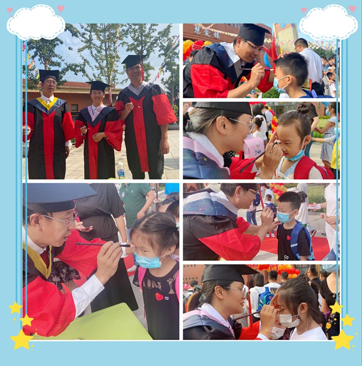 新葡萄8883官网amg第二教工党支部的老师们走到孩子们面前,在他们的额头正中点上一颗红痣,因为“痣”与“智”谐音,朱砂点痣,取的就是“智”的意思,意为开启智慧,目明心亮,祝愿孩子们从此眼明心智,好读书,读好书,开启新的知识航程,遨游学海,起飞梦想。