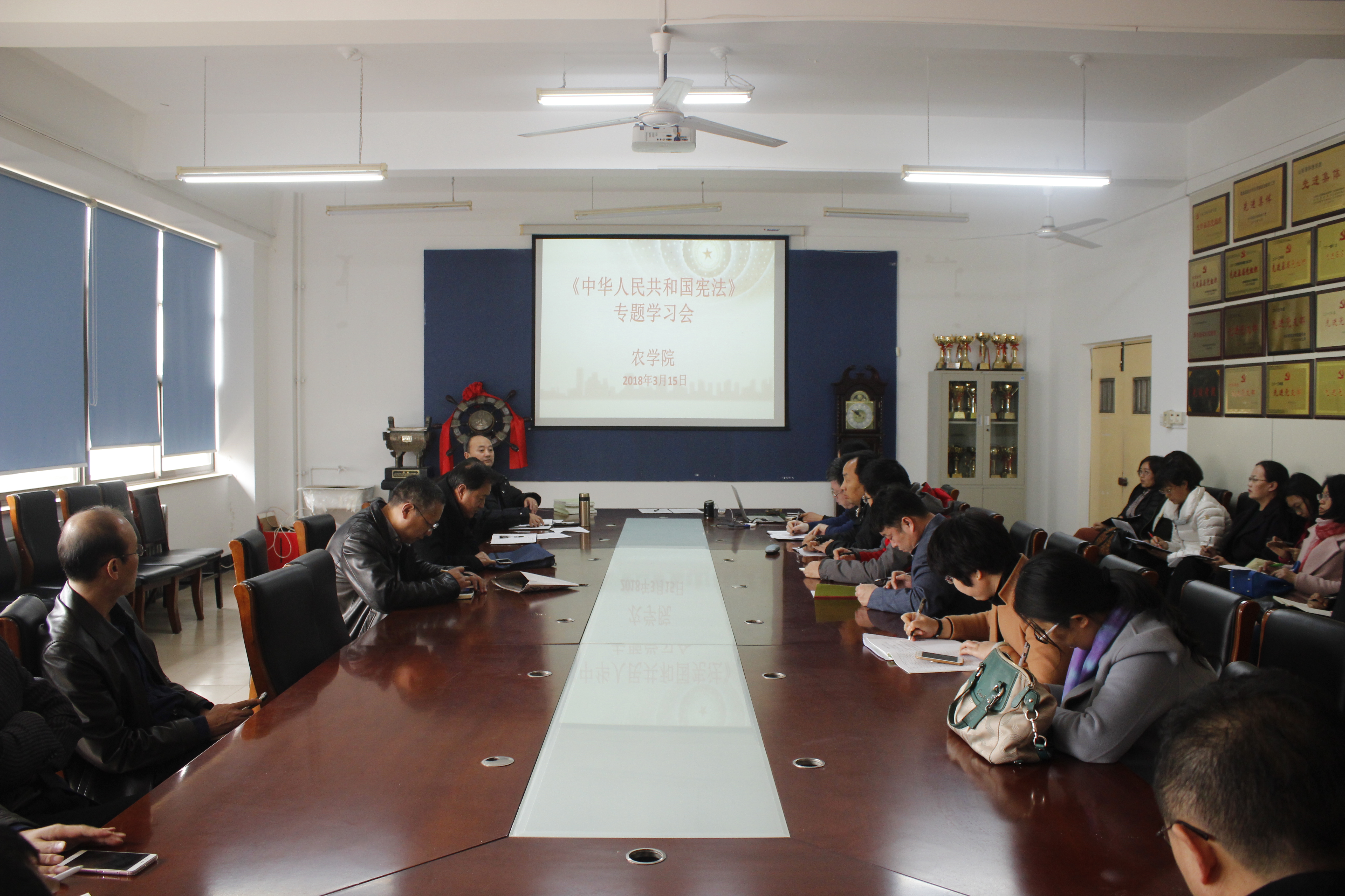为深入学习贯彻党的十九大精神,大力宣传以宪法为核心的中国特色社会主义法律体系,切实引导广大教职员工牢固树立宪法意识,增强宪法观念。3月15日,新葡萄8883官网amg在生物楼会议室召开《中华人民共和国宪法》专题学习会。会议由学院党总支书记张玉梅主持,新葡萄8883官网amg全体教职工参加。