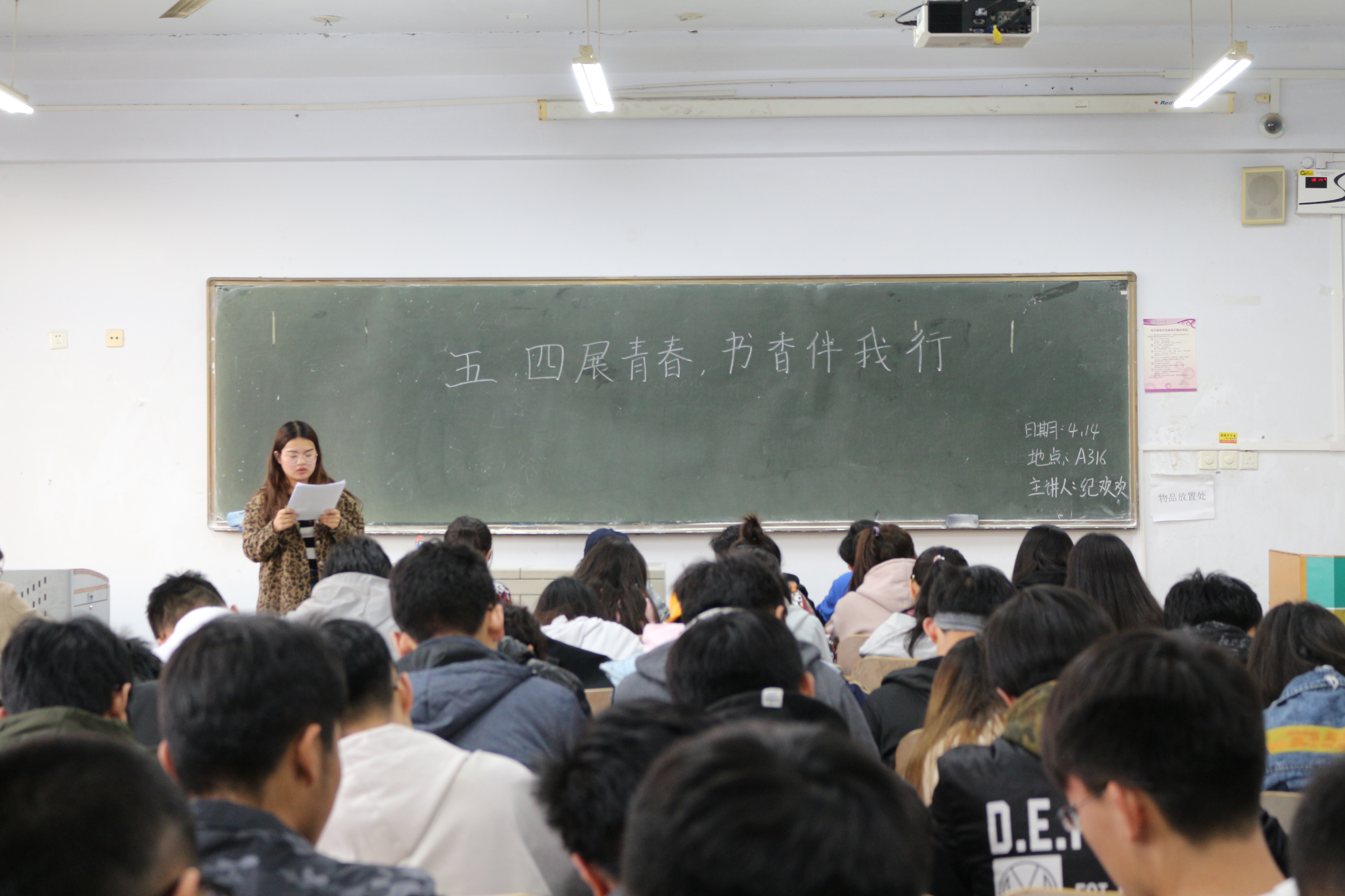 4月14日,新葡萄8883官网amg于教学区开展“五四展青春,书香伴我行”主题团课,旨在提高同学们的阅读热情,实现图书的充分有效利用。2017、2018级全体同学积极参加。