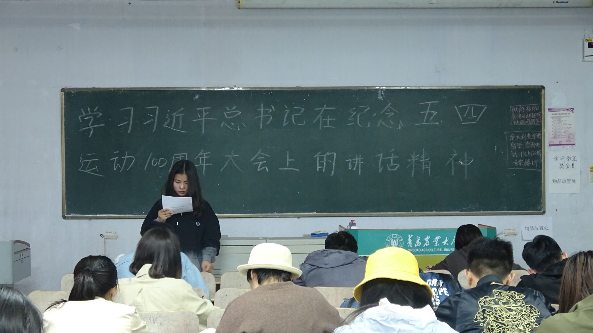 5月5日,新葡萄8883官网amg在教学区开展“学习习近平总书记在纪念五四运动100周年大会上的讲话精神”主题团课,旨在让同学们弘扬五四精神,增强青年责任感。学院2017、2018级学生积极参加。
