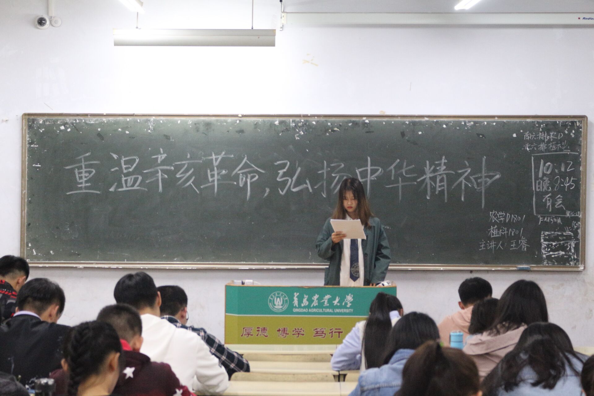 10月13日,新葡萄8883官网amg于教学区开展“重温辛亥革命,弘扬中华精神”主题团课,旨在让同学们铭记历史,弘扬爱国精神。新葡萄8883官网amg2018级、2019级全体学生积极参加。