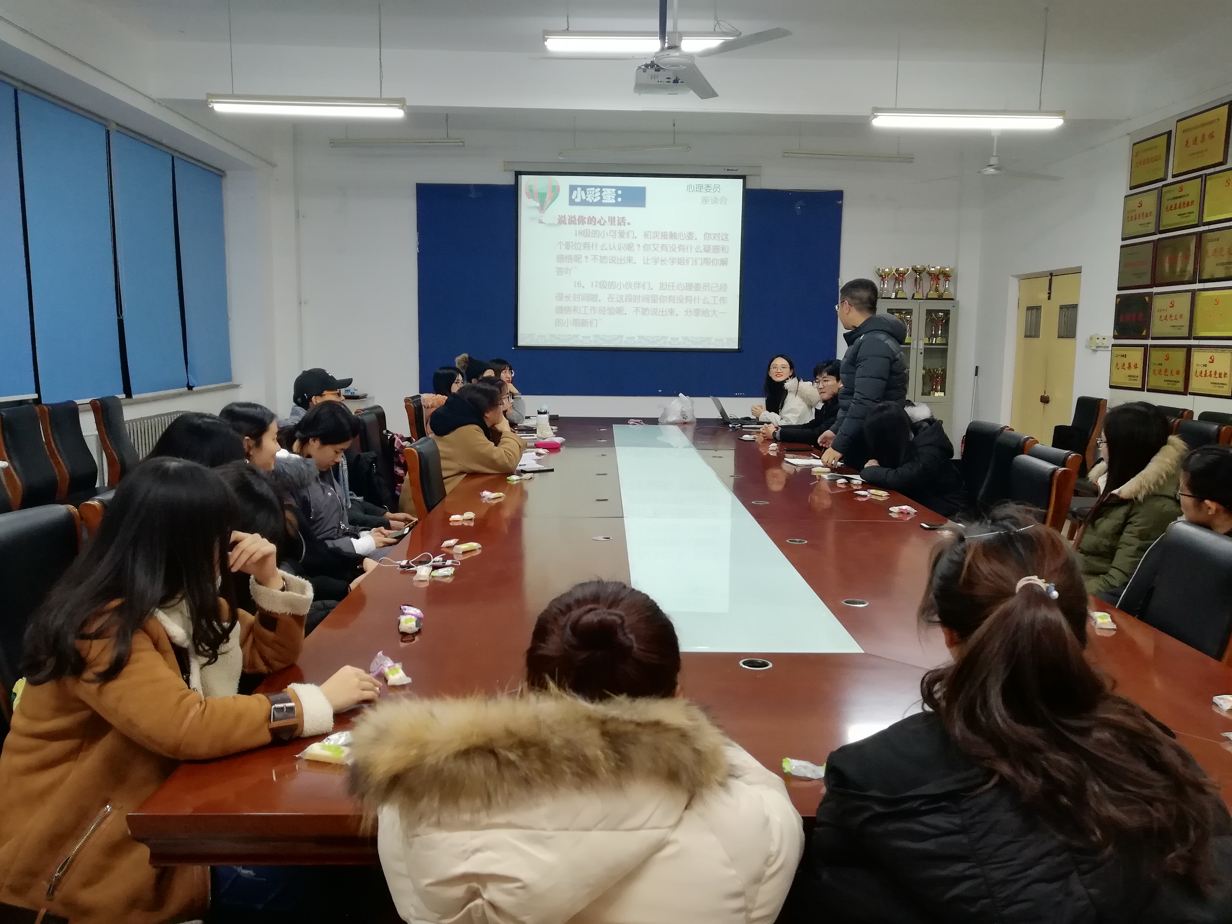 12月14日,新葡萄8883官网amg于生物楼N区开展“交流的是语言,沟通的是心灵——心理委员茶话会”,旨在宣传普及心理健康知识,提高心理委员的理论素养和工作能力。此次茶话会由学院学生会心理发展部部长单良主持,各班心理委员参加。