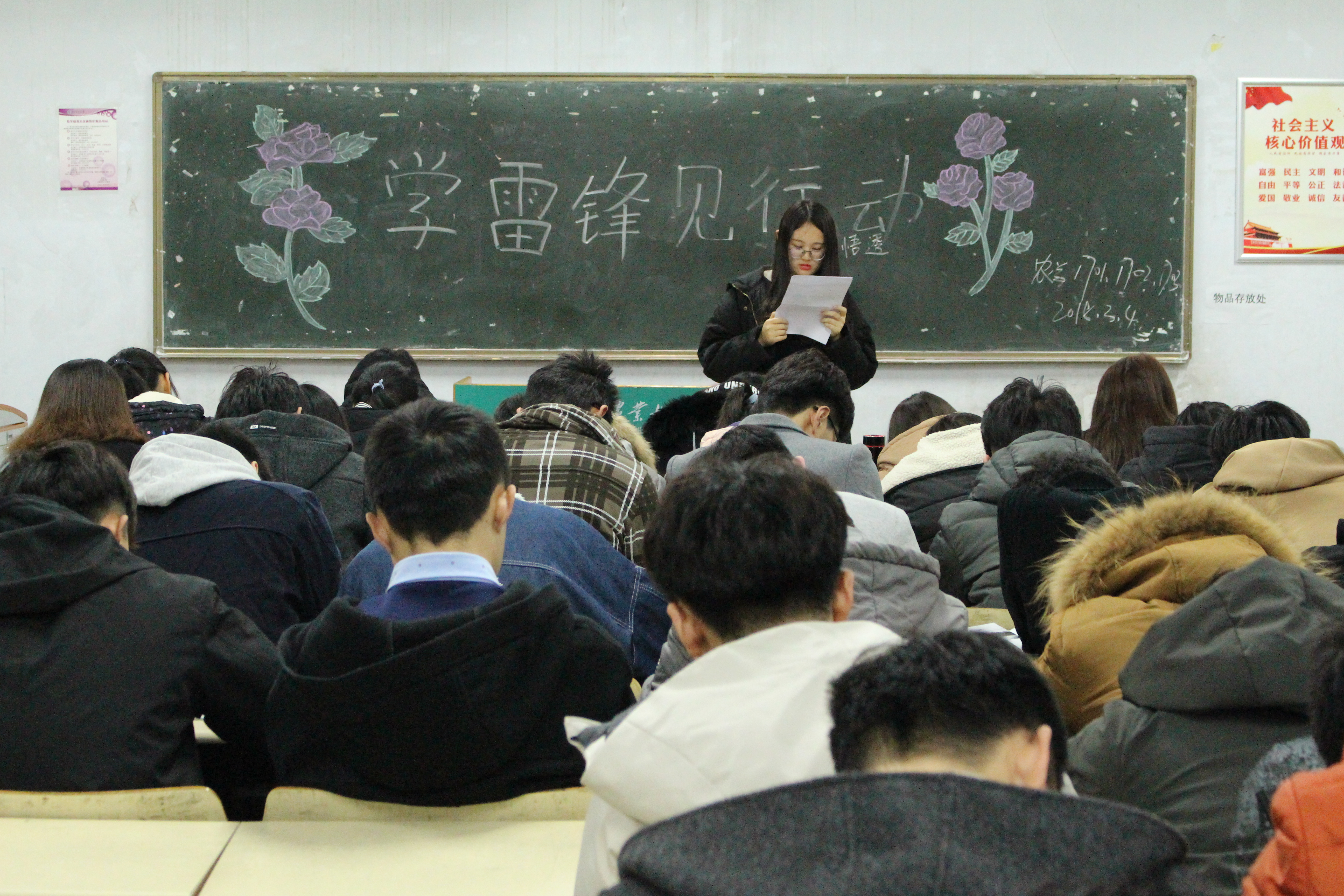 为弘扬新时代雷锋精神,共建文明校园,3月4日,新葡萄8883官网amg在教学区A区开展“学雷锋,见行动”主题团课,2016级和2017级全体同学积极参加。