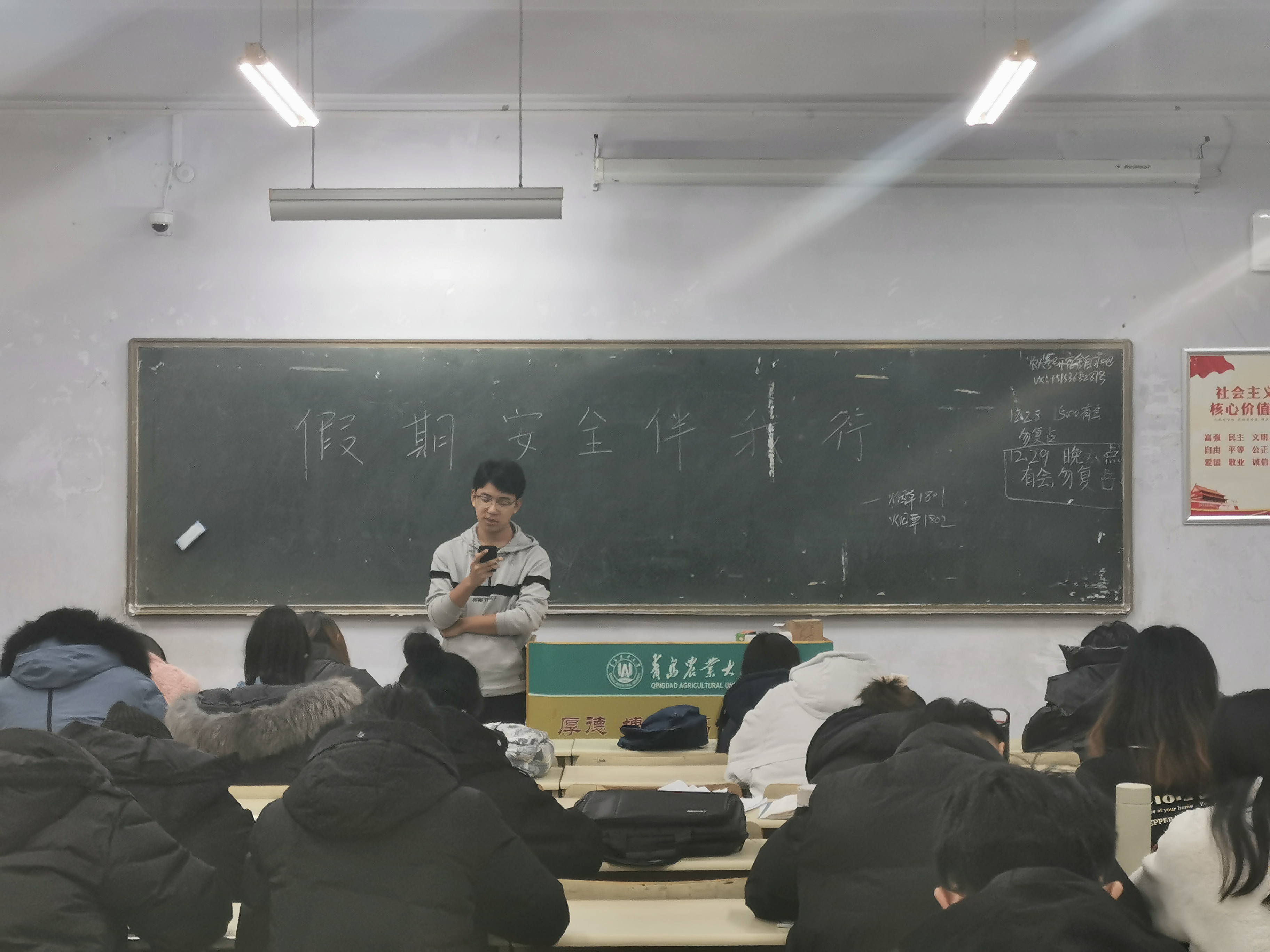 12月29日,新葡萄8883官网amg于教学区开展学习“假期安全伴我行”主题团课, 2018级、2019级全体学生积极参加。
