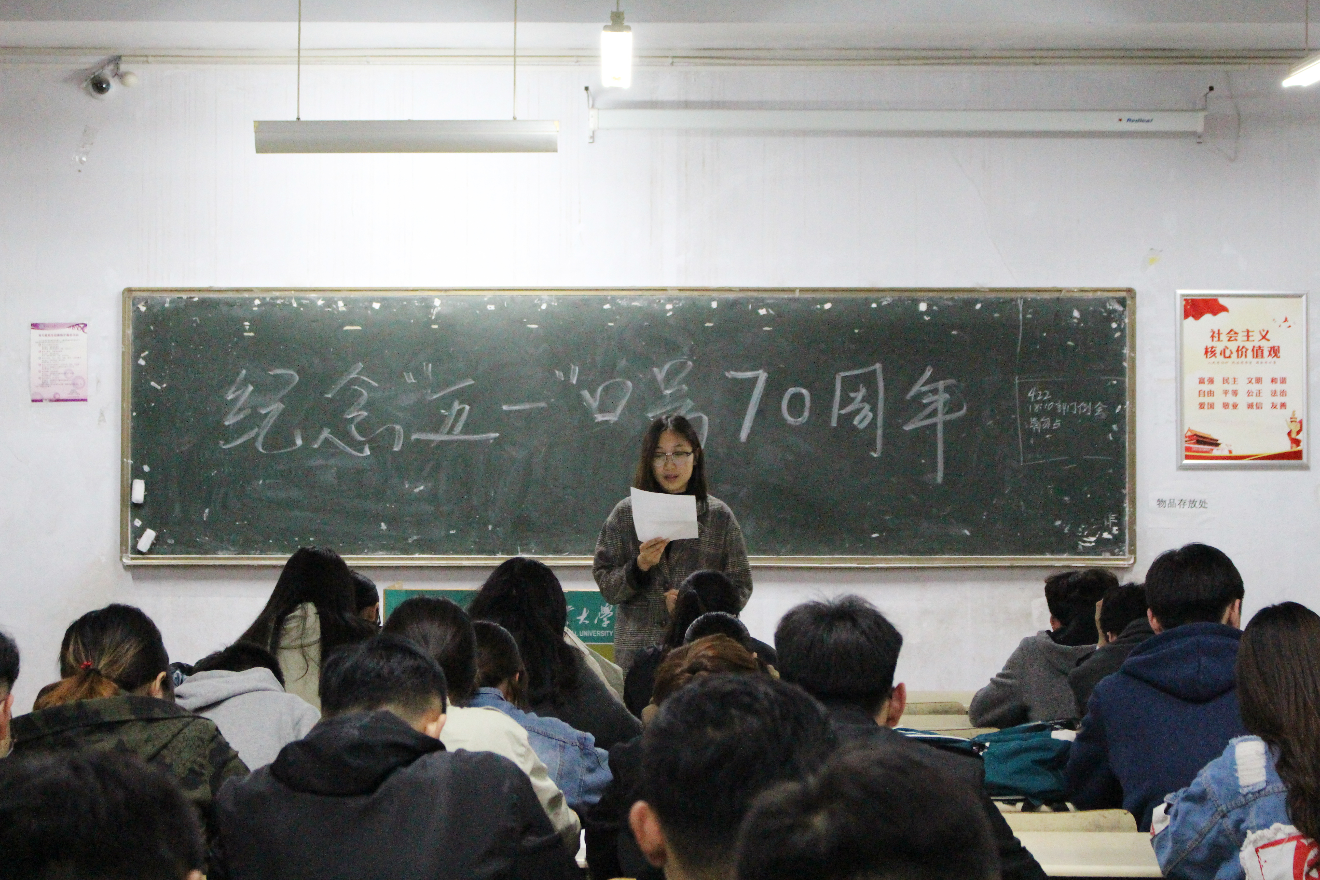 4月22日,伴着淅淅沥沥的小雨,新葡萄8883官网amg于教学区开展“纪念‘五一’口号七十周年”主题团课,16、17级全体同学积极参与并做好笔记。