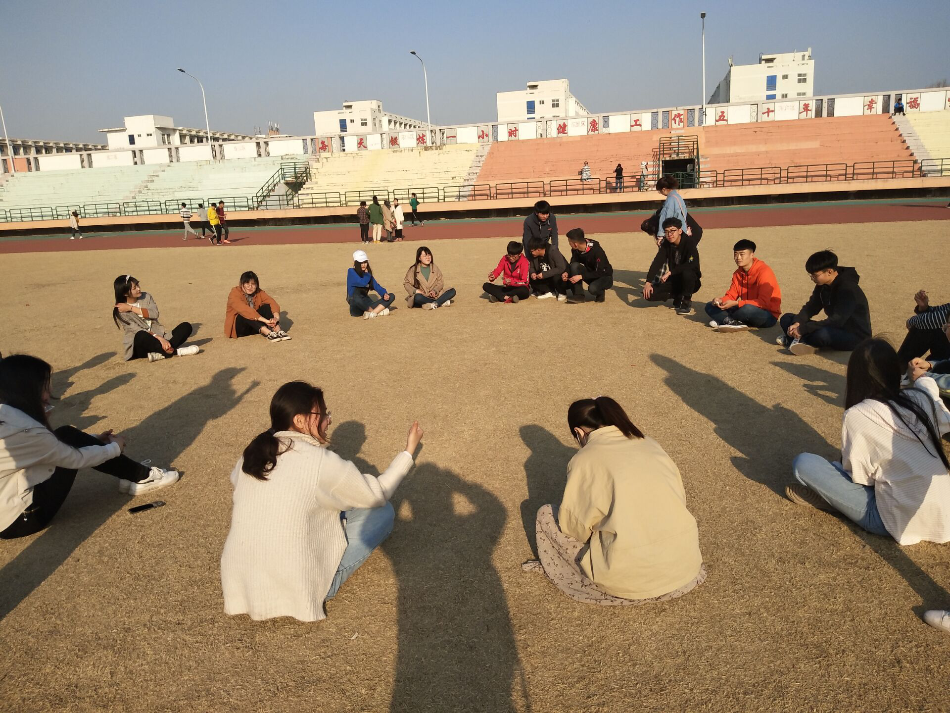 首先,心里发展部部长单良带领成员们进行了“破冰游戏”。大家根据抽取扑克牌的花色是否相同,确定分组情况,共分成四组进行比赛。在“夹球奔跑”这一游戏中,成员们并不拘泥于传统动作,用别出心裁的方式,协调步伐努力向终点前进。在“传声筒”中,大家相互配合,你划我猜,默契十足。在“爱的抱抱团”充满动感的音乐下,所有人绕圆前进,不断测试着自身的反应能力。游戏中的惩罚奖励也千奇百怪,笑点层出。游戏结束后,成员们围成一圈坐下,分享着活动的体会与感觉。