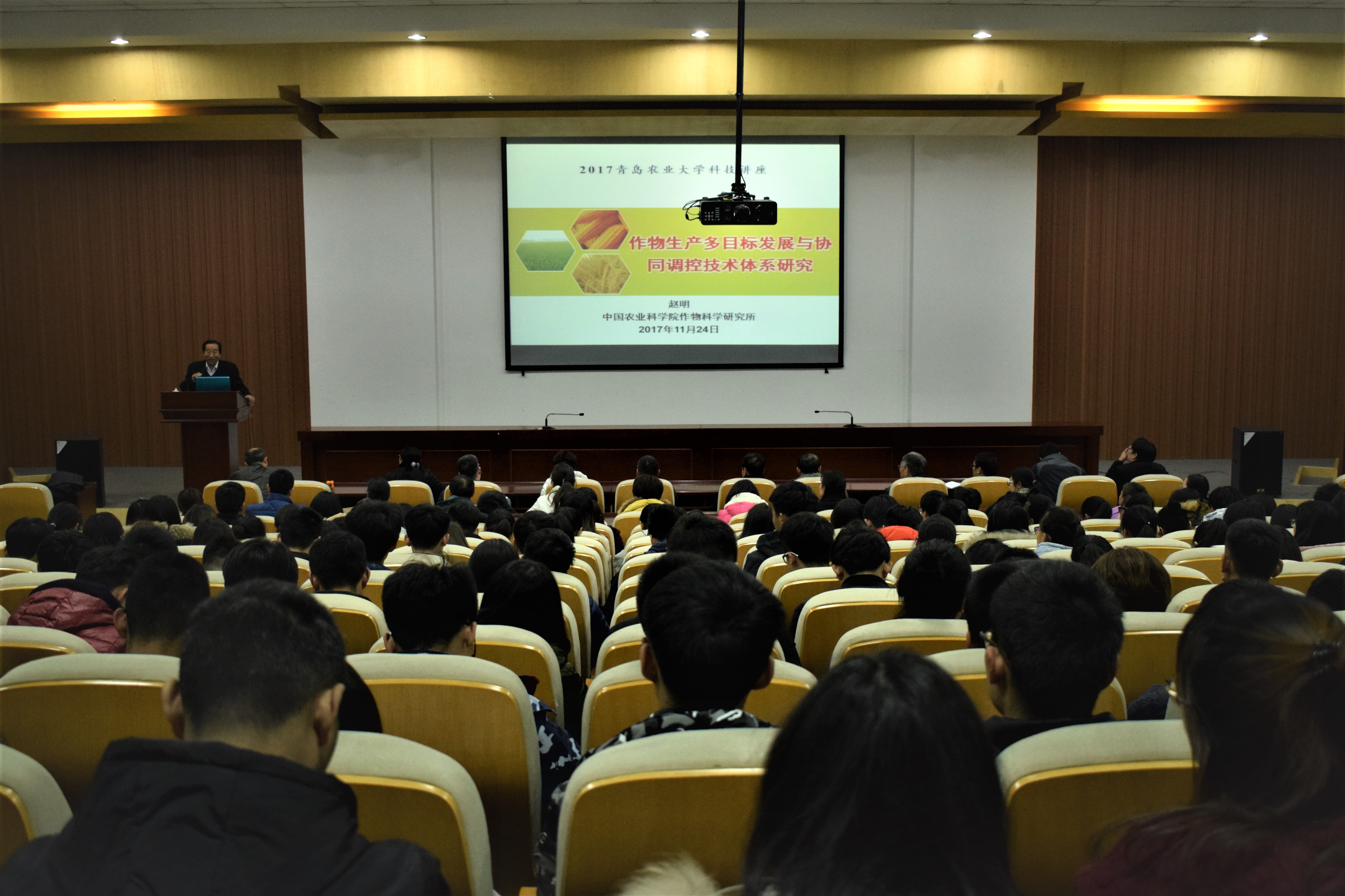 11月24日,新葡萄8883官网amg在学术会馆举办“金穗”学术论坛第二场报告会,邀请中国农业科学院作物科学研究所赵明教授作为主讲人,新葡萄8883官网amg院长刘庆昌作为主持人,全体教工、研究生及部分本科生参加。