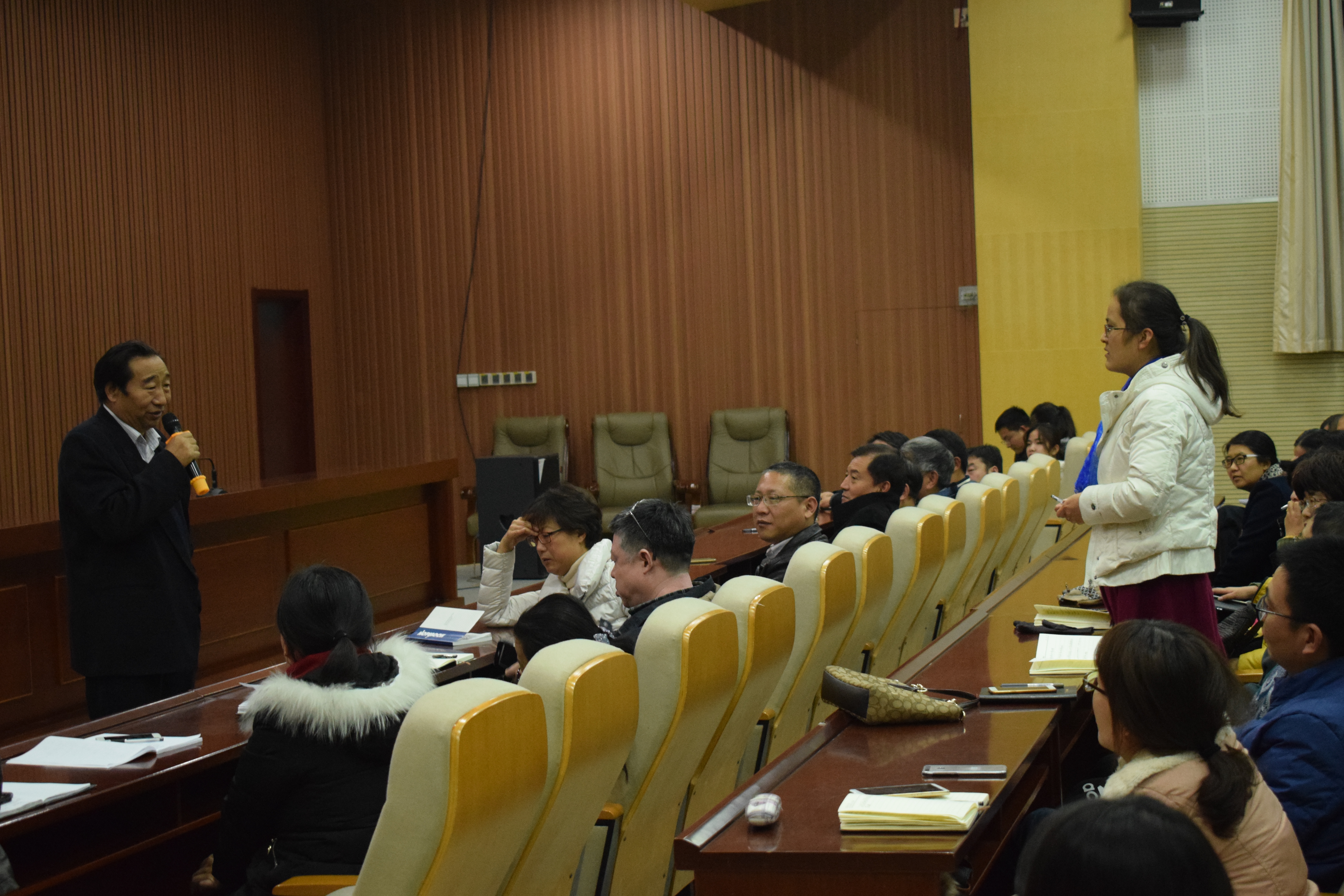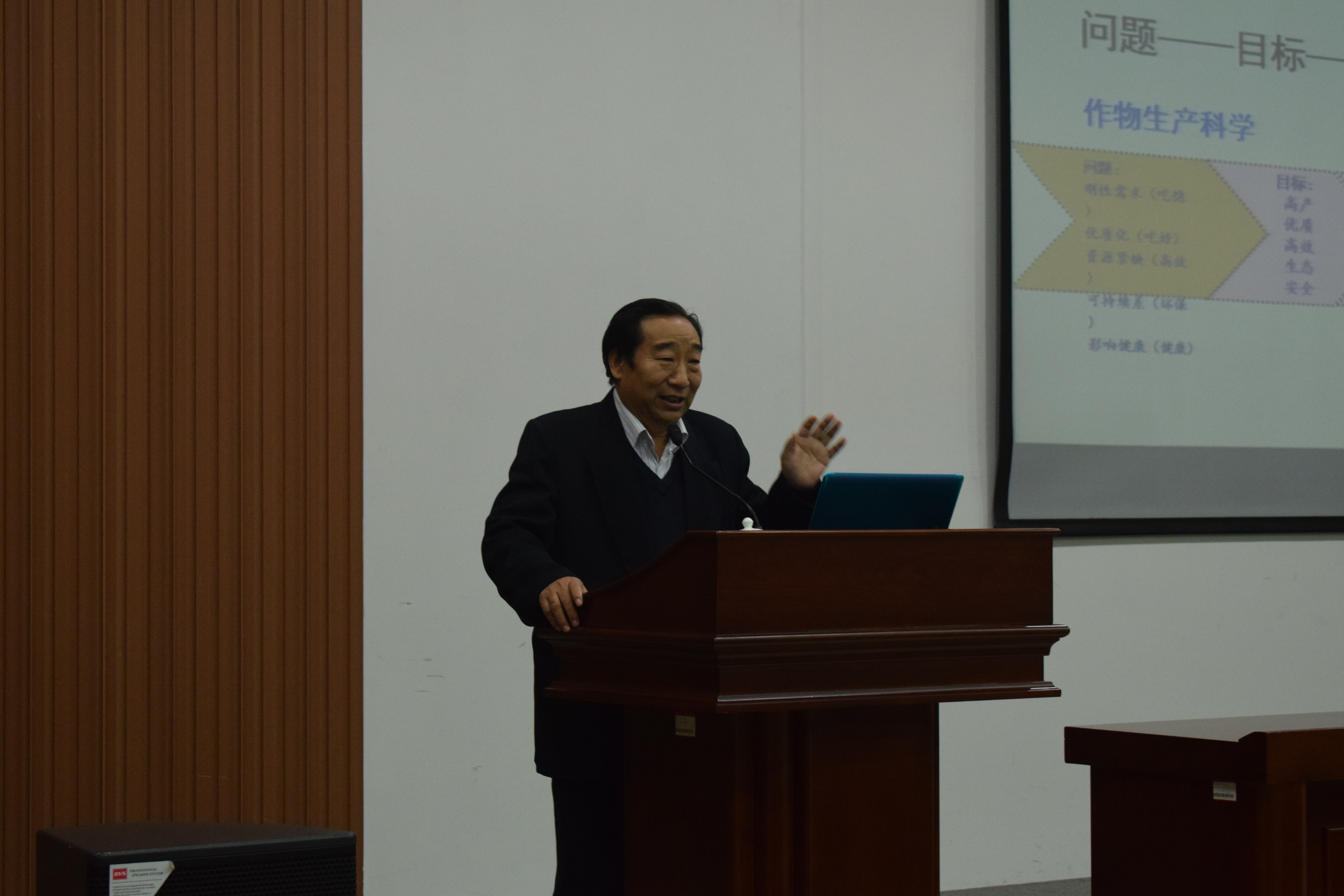 报告会开始,刘庆昌介绍主讲人基本情况并希望全体师生珍惜机会,认真听讲,积极领会。随后,赵明作了题为“作物生产多目标发展与协同调控技术体系研究”的学术报告,他从作物生产科学到世界性科技战略;从多目标技术战略到协同调控体系构建都做了详细报告。整场报告由世界性作物科学的大方向大目标到体系构建,由浅入深,由宏观到微观,层层深入,引人入胜。报告进入尾声,赵明对现场老师及同学们提出的问题做了详细解答,并就粮食安全、转基因等问题分享了自己深刻的见解。整场报告会持续三个小时,互动热烈,让大家受益匪浅。
