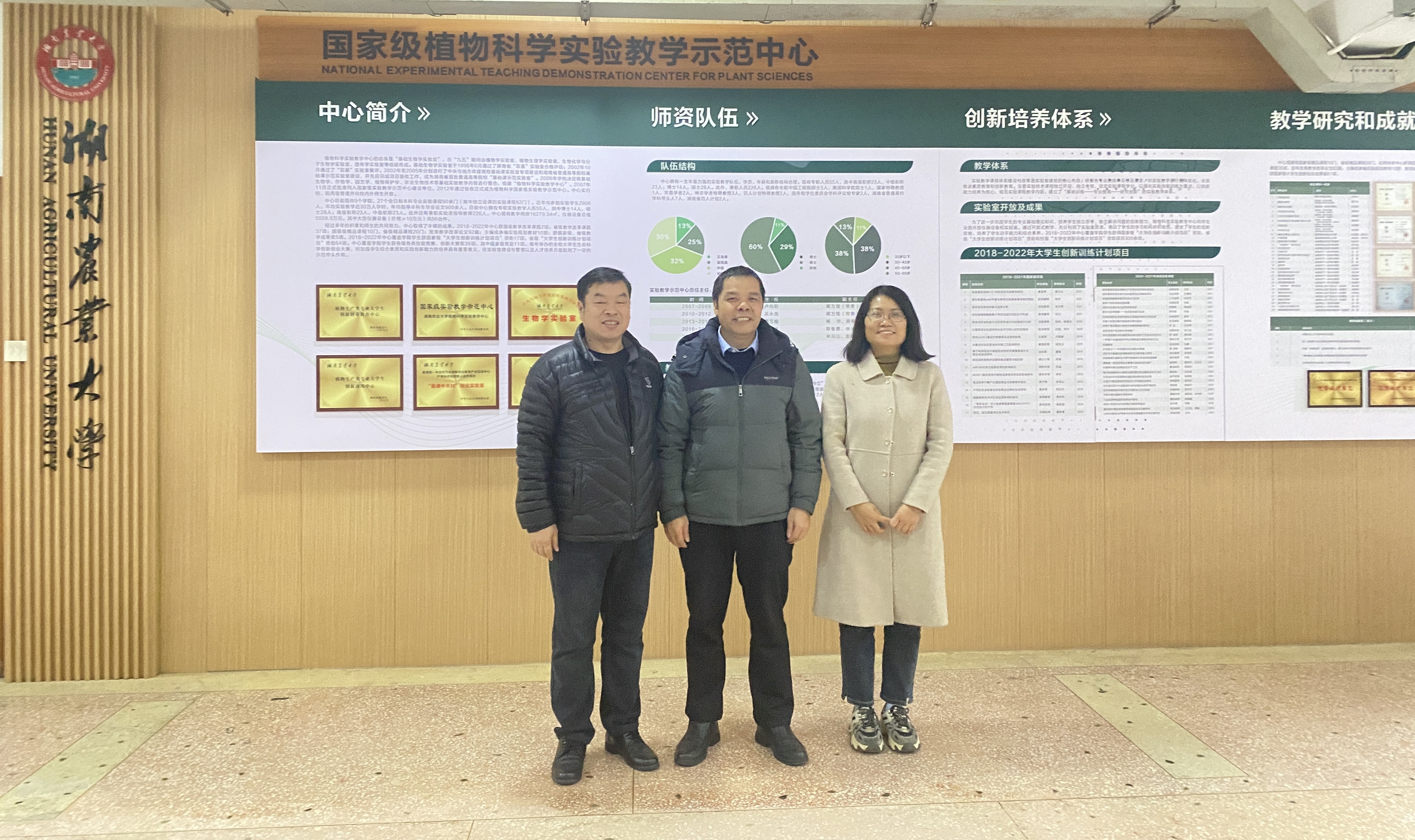 为进一步推动学院实验教育教学改革,更好的发挥实验教学示范中心在人才培养中的作用,2024年1月5日,新葡萄8883官网amg实验教学示范中心主任张恩盈和成员裴玉贺前往湖南农业大学,进行实验教学示范中心建设与人才培养调研工作。