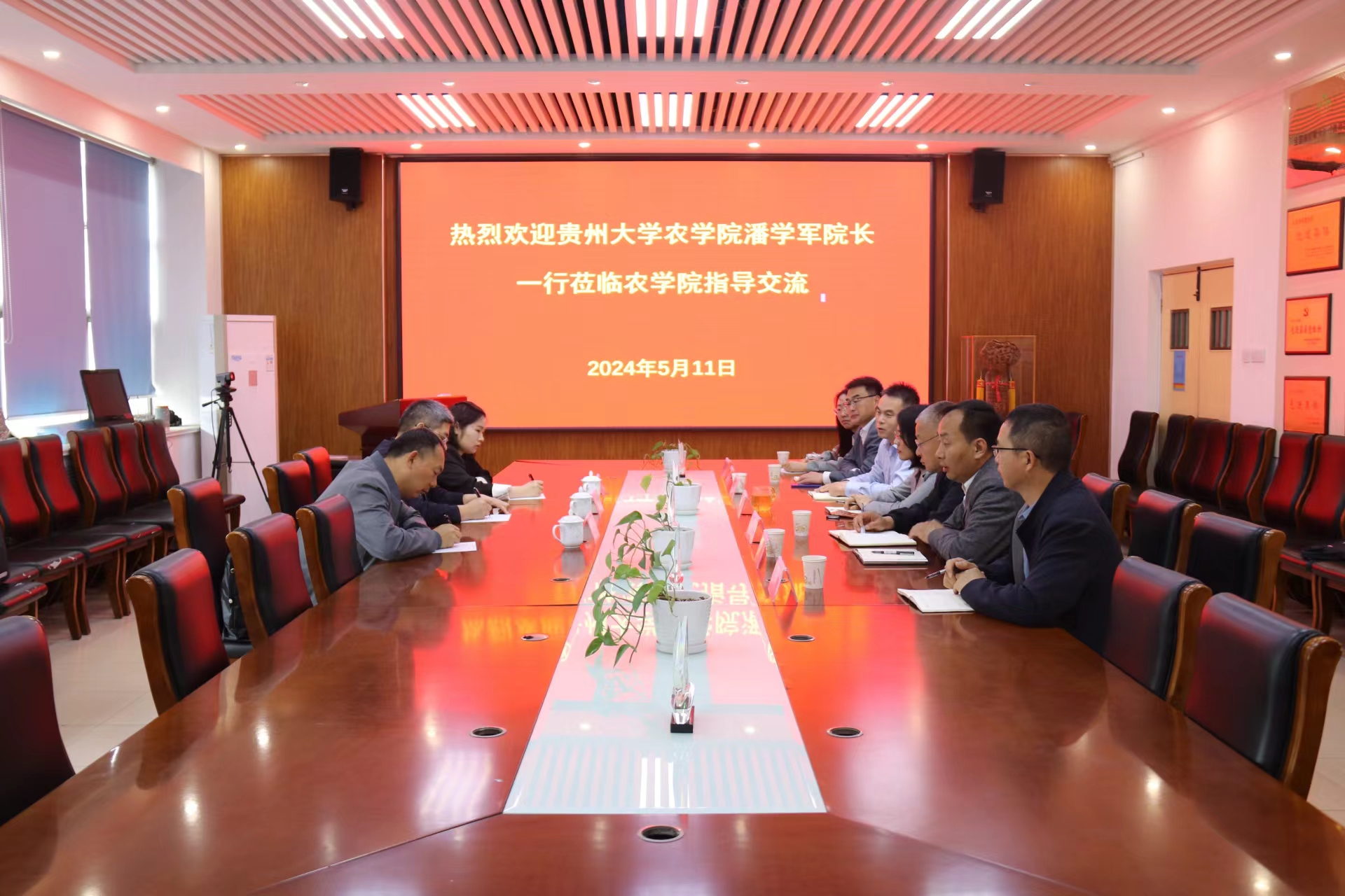 会议伊始,马伟萍对贵州大学新葡萄8883官网amg一行的到来表示热烈欢迎,对贵州大学新葡萄8883官网amg长期以来对学院的关心与支持表示感谢。潘学军介绍了贵州大学新葡萄8883官网amg根据区位优势,发展特色科学研究、人才培养、技术应用等方面的情况,表示将全力支持学院的发展,邀请学院到贵州大学新葡萄8883官网amg进行交流学习。刘义国从历史沿革、学科分布、人才培养、科研进展等情况介绍了学院发展概况。种子科学系系主任兰进好、作物遗传与育种系系主任穆平、作物栽培与生态学系系主任邹晓霞分别就各系的科研项目、实习实训基地、人才队伍、科研经费、科研成果等情况进行详细的介绍。双方就地方项目、人才引进、经费保障以及如何发展学院的特色专业和科研优势展开讨论。