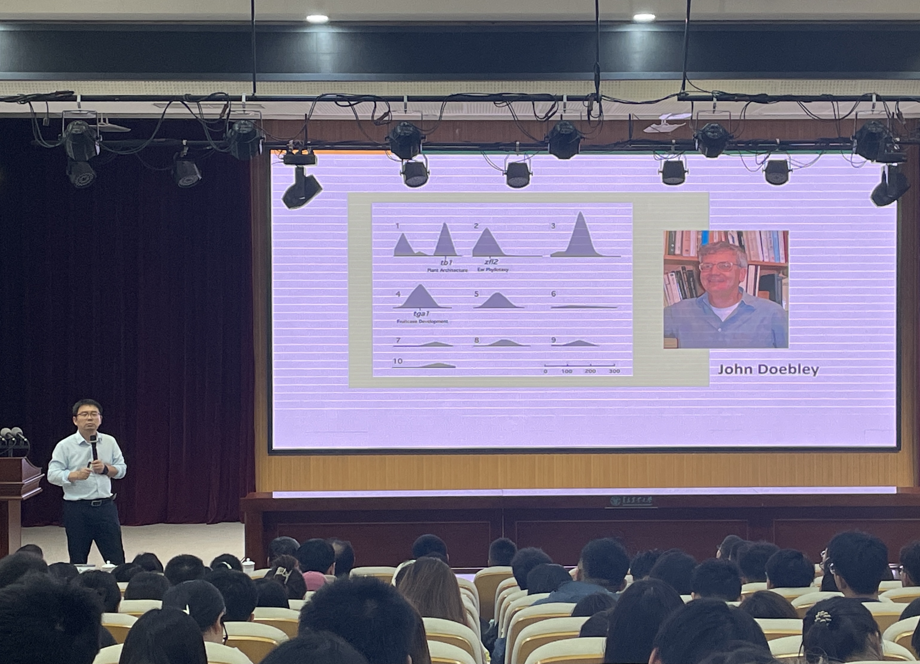 严建兵以《玉米起源进化之谜》为题,从技术进步和学科交叉角度讲述了玉米进化起源的“世纪之争”。严建兵团队对玉米的起源、进化和对高纬度的适应等进行了多年深入系统的研究,最新研究成果发表在《Science》上。报告中分享了团队对玉米的单一起源假说中存在诸多解释不通的现象的多年追踪研究,提出了玉米经历了两次驯化的新模型,二次起源极大地提高了现代玉米的适应性,解决了困扰科学家近百年的玉米起源问题之争。