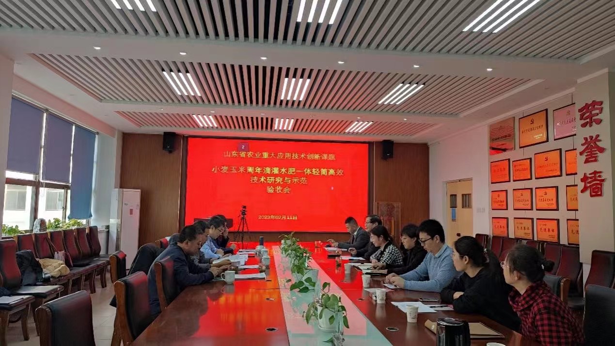 2月11日,受山东省农业农村厅委托,由全国农技中心粮食处处长鄂文弟、德州市农科院院长李宗新等5人组成的验收专家组,对新葡萄8883官网amg承担的山东省农业重大应用技术创新项目“小麦玉米周年滴灌水肥一体轻简高效技术研究与示范(SD2019ZZ003)”进行了验收评审。验收会由科技处副处长吴薇主持,新葡萄8883官网amg院长马武军、项目主持人刘义国及项目组成员参加。