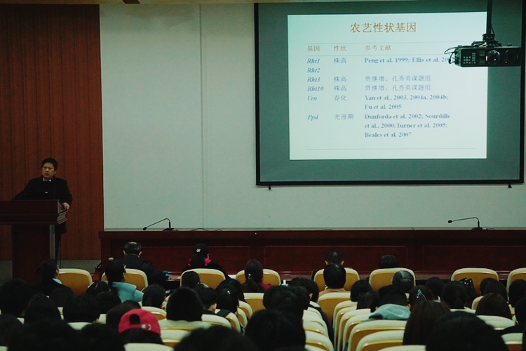 3月15日,由新葡萄8883官网amg主办的“金穗”学术论坛第三次专家报告在学术会馆第二报告厅开讲。中国农科院作物科学研究所夏先春研究员应邀作了题为《小麦基因克隆、功能标记开发与应用》的学术报告,报告由新葡萄8883官网amg院长刘庆昌主持,新葡萄8883官网amg全体教师、研究生及部分本科生参加。