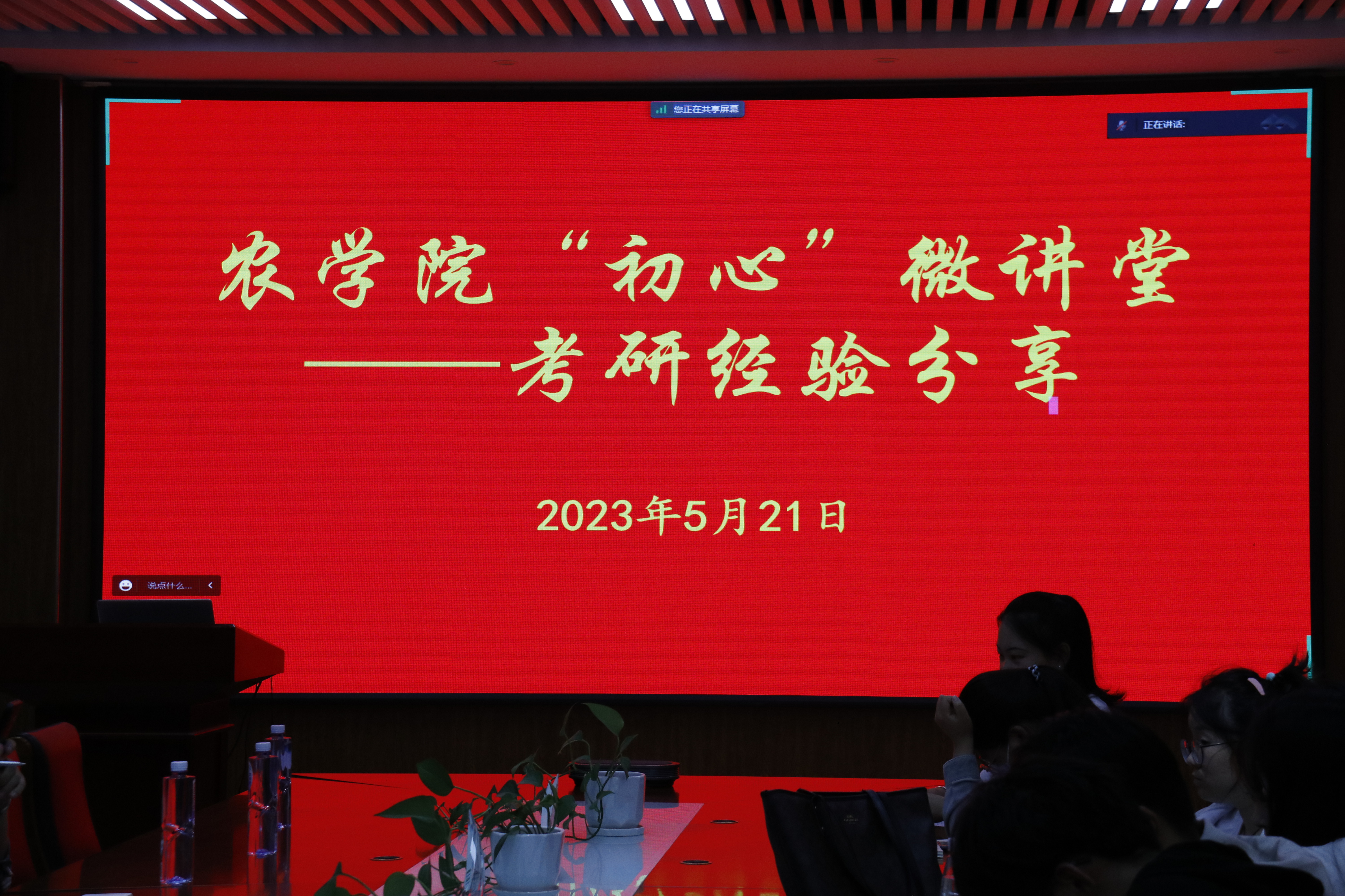为助力考研学子积极备考,解决考研学子目前存在的问题,新葡萄8883官网amg于5月21日在生物楼举行“初心”微讲堂活动,2019级成功考取研究生的五位学生代表进行考研经验分享,活动采取线上和线下相结合的方式,2022、2021、2020级学生参加活动,活动由种子科学与工程(创新)2001班董芳宇主持。