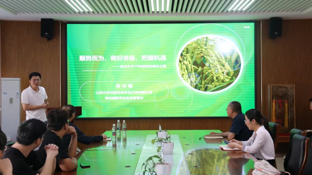 校友张守福以“顺势而为、做好准备、把握机遇”为主题,结合自身就业、创业经历展开分享。张守福表示,大学生在择业、发展过程中要“顺势而为”,综合考量企业发展、行业进步、政策支持、技术创新等因素,不断提升个人能力,做好资源储备,把握发展机遇,实现个人理想。张守福从兴秾沃野生态农业开发有限公司的发展历程及经营模式切入,详细介绍了公司的主营业务及发展规划,并希望同学们努力提升专业素养,积累实践经验,通过创新创业、高质量就业给农业发展注入创新血液,助力国家三农事业发展。
