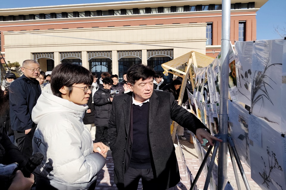 此次活动在《不再犹豫》的歌声中拉开帷幕。田义轲代表学校对本次活动的召开表示热烈祝贺,他表示,本次活动的举办,不仅是植物生产类学科的成果展示,更是各学院贯彻落实全国、全省教育大会精神和学校第三次党代会精神的实际举措,希望各学院持续强化专业规范建设,为乡村振兴和强国建设培养更多高素质知农爱农人才,希望同学们能够感悟植物生产文化,提升对植物生产的认知,做到学农知农、学农爱农、学农兴农、扎根基层、立志成才,为建设农业强国贡献青春智慧和力量。随后,田义轲一行参观了各个展区,品鉴地瓜、花生、苹果等科研成果,观赏制作精美的昆虫标本和植物标本,详细向现场同学了解相关学术科研成果、作品制作过程等,鼓励同学们坚定文化自信、树立专业信心,做学农爱农、知农为农的新型农业人才。