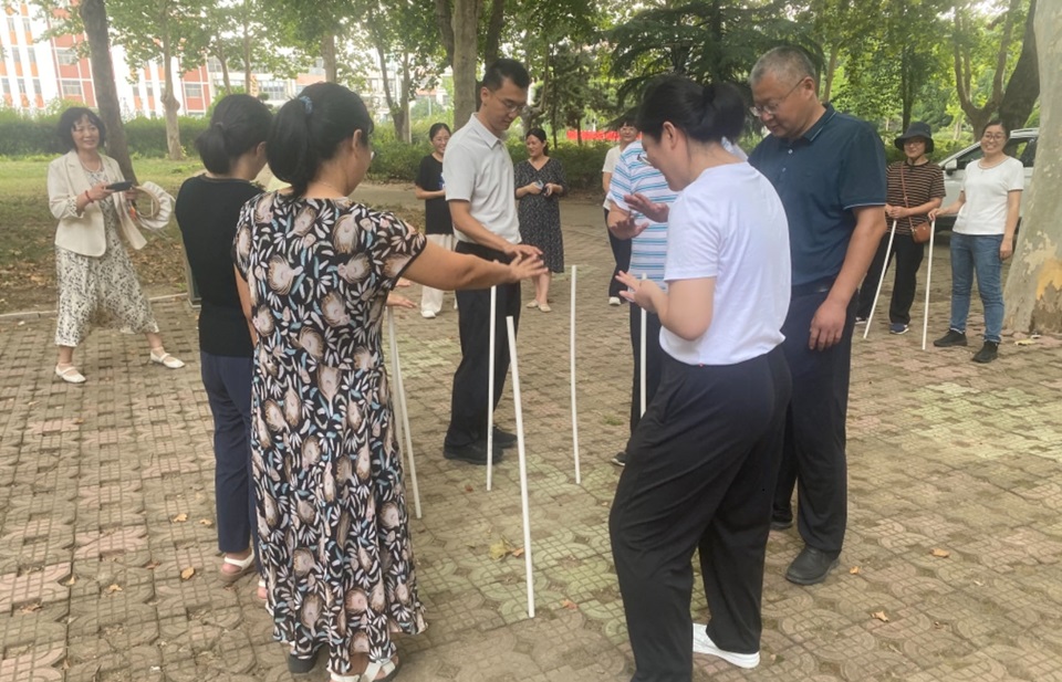 新葡萄8883官网amg分工会在牡丹园开展了“不倒森林”趣味活动。新葡萄8883官网amg全体教职工以系为单位进行比赛,大家“伺令而动”,踏着节奏,快速移动着步伐完成杆子交接。在一次次移动中,传递的不只是长杆,还有对彼此的信任和凝聚的力量。通过整齐响亮的口号传递出团结进取精神,老师们对合作这个词有了更深刻的理解。整个比赛过程紧张而快乐,加油声、欢笑声此起彼伏,展现出了新葡萄8883官网amg教职工们的蓬勃朝气和拼搏精神。接下来,在学校开展的庆祝教师节趣味运动会比赛中,新葡萄8883官网amg代表队的教师们团结协作、不畏强手、奋力拼搏,取得了接力运球一等奖、跳大绳三等奖的优异成绩,创造了新葡萄8883官网amg参加校趣味运动会的历史最佳战绩。