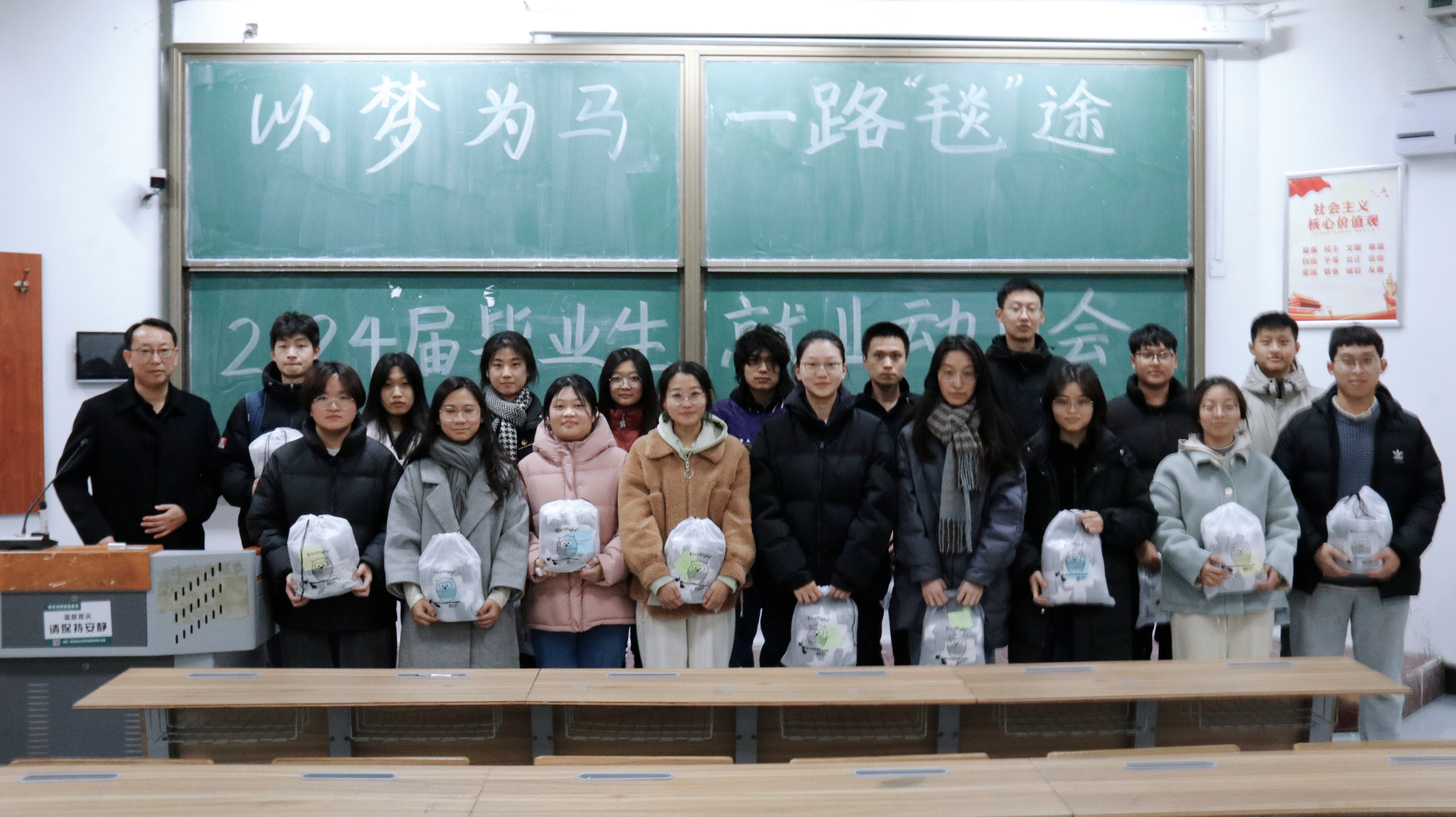 1月29日,新葡萄8883官网amg于教学楼举办“以梦为马,一路‘毯’途”——2024届毕业生就业动员会。新葡萄8883官网amg党委副书记孙占伟,团委书记石勇,辅导员刘宁、李宪翔,2020级班主任及学生代表参加。本次活动由石勇主持。