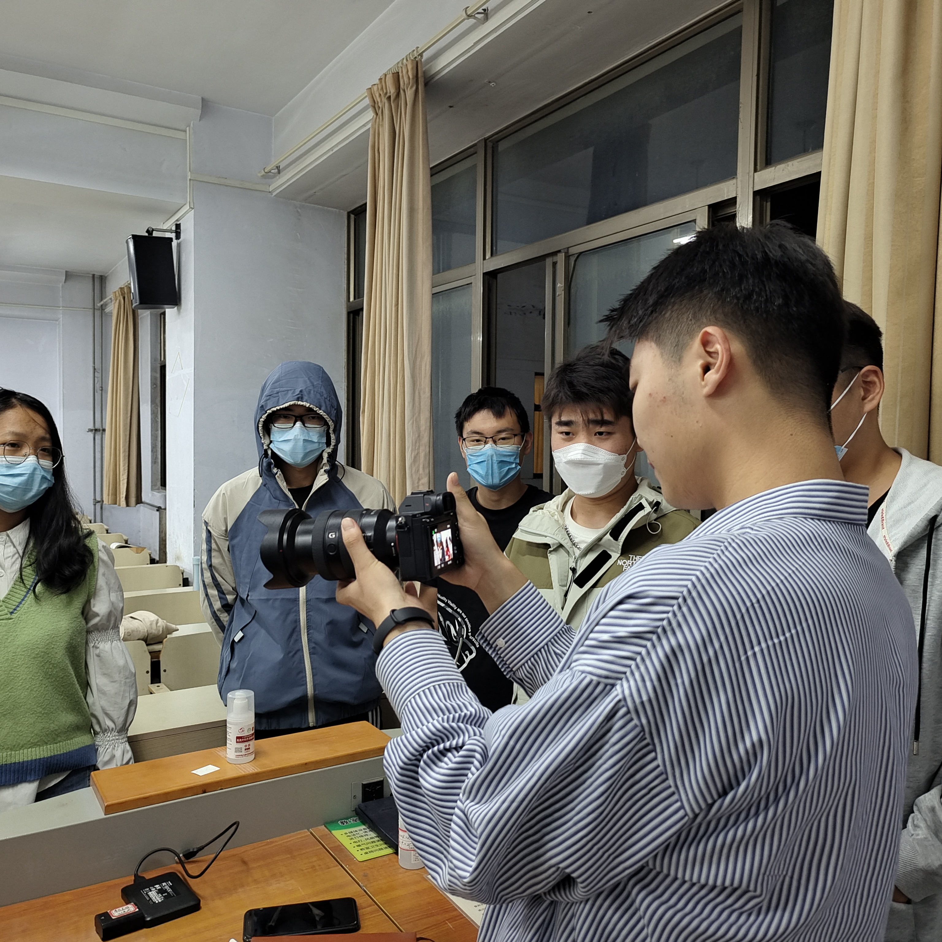 本次班会邀请到动漫与传媒学院编导2002班张隆进行讲解,他曾参与摄制《农大二十四节气》等优秀作品。班会中,张隆向同学们介绍了光线应用、拍摄技巧、构图取景等摄影基础知识,让同学们对摄影有了初步的了解。随后,张隆对相机构造及功能进行讲解,讲解过后,同学们亲自用相机学习拍照。拍照过程中,张隆就学生们提出的问题进行耐心的解答。