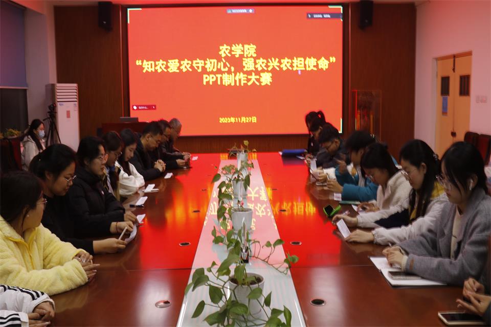 比赛伊始,陈子仪介绍了本次比赛的流程和评分细则。比赛过程中,参赛选手结合自身生活实际,将个人对“知农爱农、强农兴农”的理解融入到PPT制作与汇报中。参赛选手紧扣比赛主题,从农耕文化传承、耕作制度演变和农业生产技术等角度入手,阐述农业发展的历程,讲述杰出校友的奋斗事迹,倡议农科学子以严格的态度、敢担当的精神、坚定的理想信念,厚植爱农情怀,练就兴农本领,肩负起“知农爱农守初心,强农兴农担使命”的重任,充分展现农科学子爱国奉献、蓬勃向上的精神风貌。比赛结束后,到场人员进行合照留念。