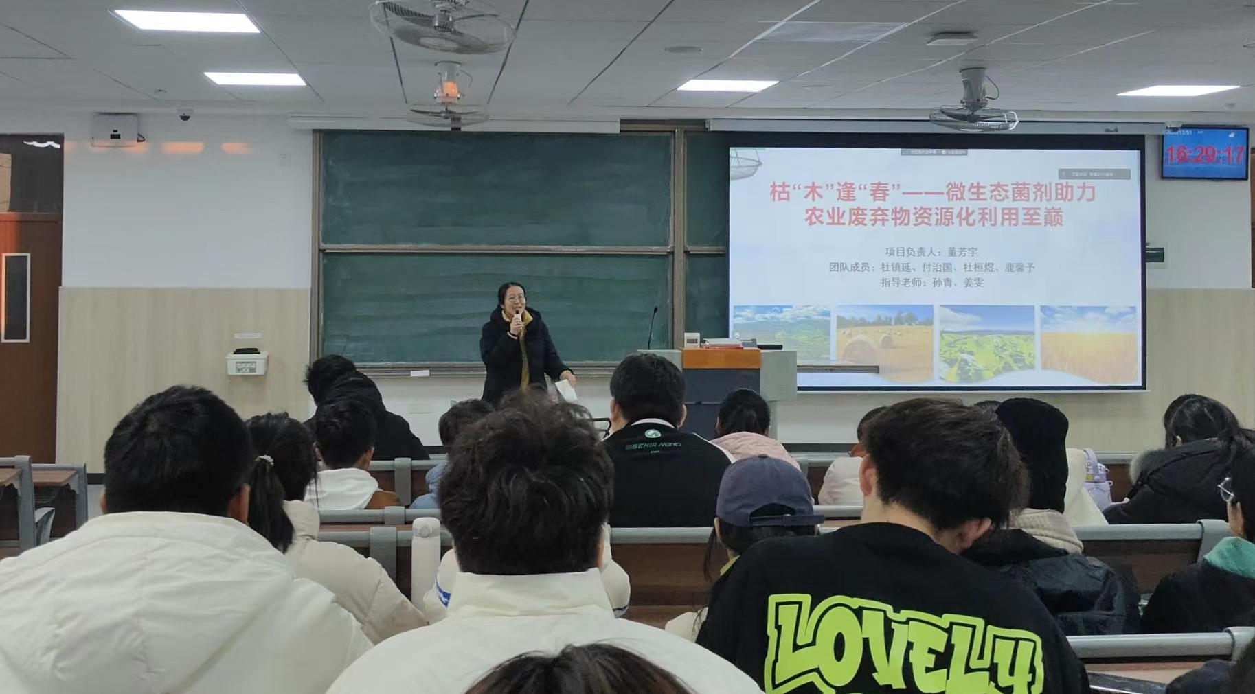 黄迪围绕竞赛的报名方式、种类、赛制等方面,对竞赛的基本信息进行详细的介绍,深入剖析竞赛与学科之间的联系,阐明双创竞赛的创新性、包容性、专业性及综合性。黄迪阐述了大学生双创训练的相关情况,并希望感兴趣的同学积极主动参与,在参与竞赛的过程中开拓视野,增长见识。王春燕以优秀学生的竞赛作品为例,讲解了双创竞赛的相关技巧,表示“勇敢者先享受世界”,并希望同学们勇敢踏出第一步,以赛带练,成长为更好的自我。活动最后,王春燕与黄迪耐心解答了同学们对双创竞赛的疑问。
