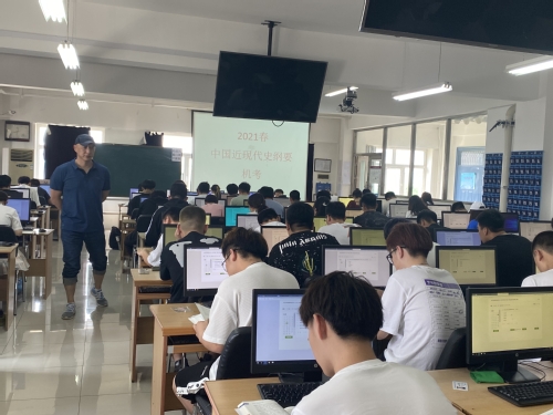 思想政治理论课教研部《中国近现代史纲要》课程期末考试在教务处、数据学院等部门的大力支持与配合下,已于2021年5月18—21日圆满结束。作为考查课,《中国近现代史纲要》课程首次尝试采用随堂线上机考的方式进行考核。本次考试共有2561名学生参与考试,涉及11个时间段,40个考场60余人次监考。从学期初计划机考到落地实施,思政部全体教师及《中国近现代史纲要》课程兼职教师做了大量的准备工作。考试虽圆满结束,但首次尝试线上随堂机考也发现了一些需要改进的问题,为今后进一步探索思政课程考核方式的改革积累了宝贵的经验。