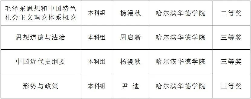 近日,黑龙江省教育厅对2023年全省高校思想政治理论课“精彩系列”教学成果遴选结果予以公示,我校Beat365中文官方网站教师获评二等奖3项、三等奖9项,获奖总数创历史新高。