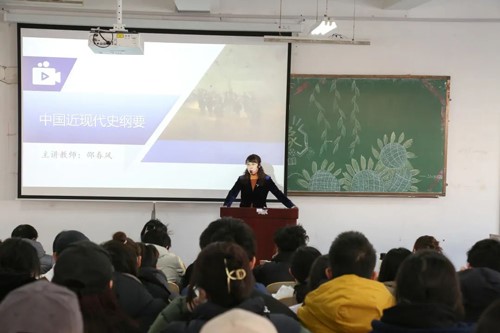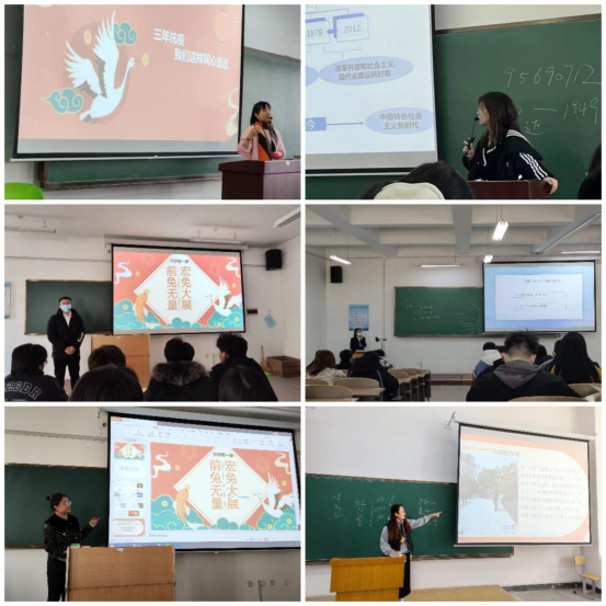 三是创新课程教学方式,上好大思政课。把思政小课堂和社会大课堂有效衔接,《纲要》课程在校园文化馆和国防广场进行场教学、开展情境教学和体验式教学;组织党史知识竞赛,厚植青年学生爱国主义情怀;2021年在伟大的中国共产党成立一百周年之际,结合《纲要》课程教学内容我院与校团委联合编排指导的大型原创历史“史诗”剧《在灿烂的阳光下》,在校内进行多次巡演,演出以强烈的感染力深深地打动了学生和观众,获得好评;《毛泽东思想与中国特色社会主义理论体系概论》课程一直与校团委联合组织学生寒暑假“三下乡”社会实践活动,引导和帮助广大青年学生在与现实相结合的“大思政课”中“受教育、长才干、作贡献”;指导学生参加省“第二届高校大学生”新思想我来说“公开课”主题展示活动中荣获“三等奖”,3人获优秀指导教师称号。
