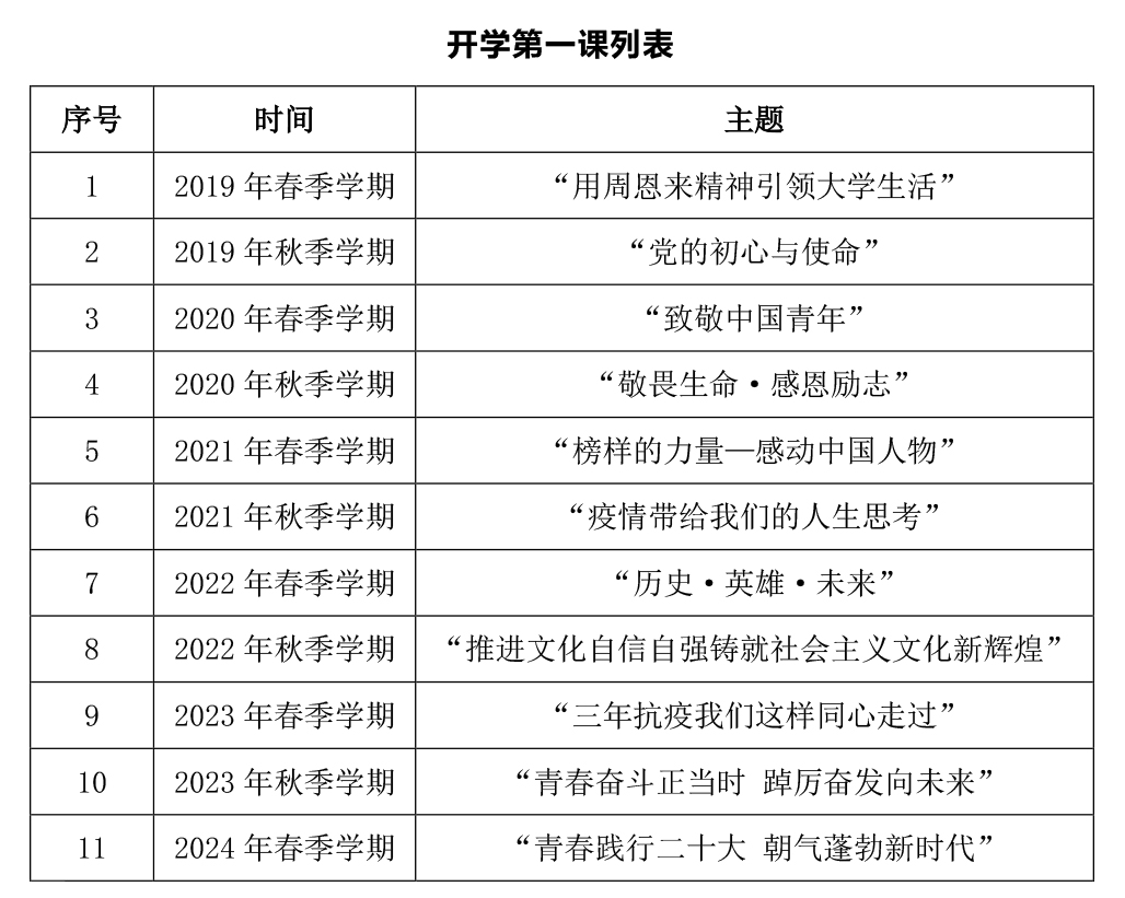 一是持续打造“开学第一课”思政课品牌。每学期开学初,学院都会组织全体思政课教师集体备课并同上开学第一 课,及时对国家最新重大理论时政热点问题进行系统解读。如:统一讲授了“中国青年的样子”“榜样的力量—感动中国人物”“疫情带给我们的人生思考”等系列专题。通过开学第一课充分发挥了思政课育人的典型示范引领作用。