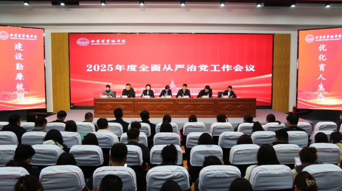 会议强调,做好2025年全面从严治党工作,要全面贯彻习近平总书记关于党的建设的重要思想、关于党的自我革命的重要思想,深刻认识和把握新时代新征程全面从严治党面临的新形势新任务新要求,坚持用改革精神和严的标准管党治党、办学治校,推动全面从严治党不断取得新成效。一是要在强化政治建设上下功夫,铸牢忠诚政治品格。班子成员要严格落实“一岗双责”要求,各级党组织要坚决扛起全面从严治党主体责任,党组织书记要严格履行第一责任人职责。要深刻领悟“两个确立”的决定性意义,教育引导广大党员干部自觉用“四个意识”导航,用“四个自信”强基,用“两个维护”铸魂,确保在政治立场、政治方向、政治原则、政治道路上同党中央保持高度一致。二是要在强化思想建设上下功夫,夯实理论武装根基。深入推进新时代立德树人“五大工程”,巩固拓展党纪学习教育成果,认真开展深入贯彻中央八项规定精神学习教育,引导党员干部学理论、强信念、铸忠诚。三是要在强化作风建设上下功夫,深化全面从严治党。认真落实中央八项规定及其实施细则精神,紧盯突出问题、隐形变异,驰而不息纠治“四风”,以打造勤廉学校为目标,一体推进党风廉政建设、师德师风建设、校风学风建设。各级党组织、各级领导干部要切实担负起管党治党政治责任,要教育大家坚决克服侥幸心理,扣好廉洁从业的“第一粒扣子”。纪检监察部门要切实履行好监督职能,严肃执纪、抓早抓小、防治未病,以零容忍态度惩治腐败和不正之风,发现一个就要坚决查处一个。