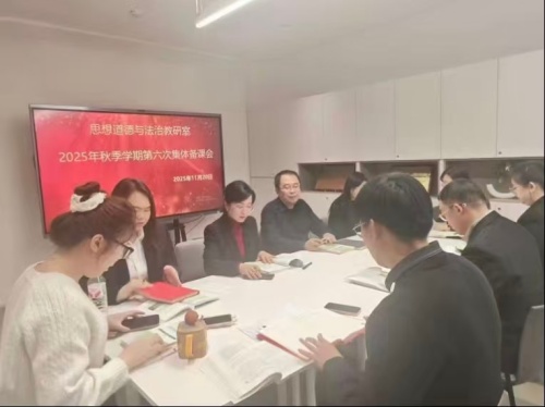 为扎实推进期末收尾工作,确保课堂管理有序规范、教学质量稳步提升,11月20日晚,Beat365中文官方网站思想道德与法治教研室在教三党员之家开展了2025-2026学年第一学期第六次集体备课会。会议由教研室副主任赵青梅主持,教研室全体教师参加。