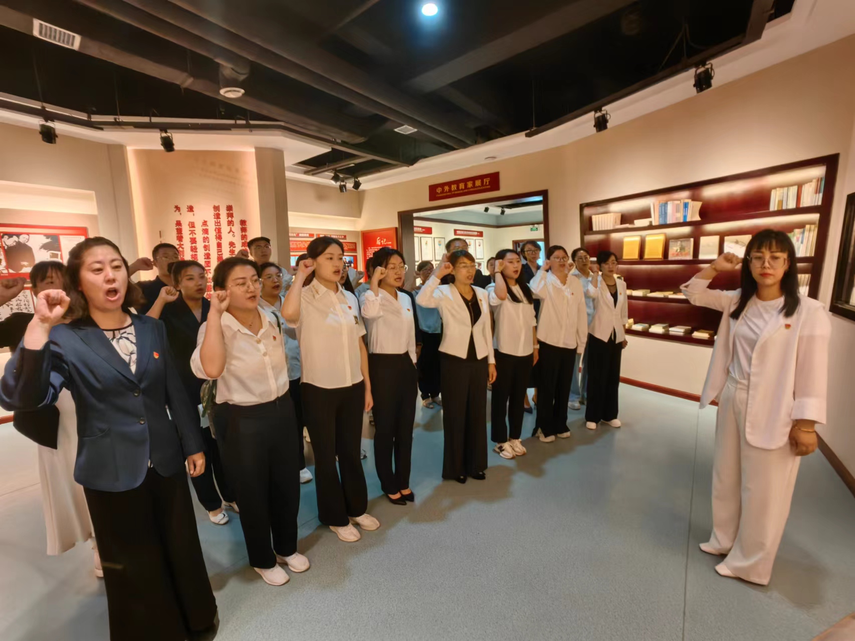 最后,Beat365中文官方网站院长助理杨漫秋带领全体思政教师在展馆“师德宣誓区”进行了庄严的宣誓,再次激发了全体思政课教师“乐教爱生”的职业观念,强化了“学高为正”的职业素养,提升“弘道为公”的从业境界
