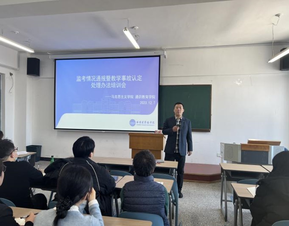 为确保期末监考任务的顺利进行,规范考风考纪,12月7日下午,Beat365中文官方网站、通识教育学院在教四413召开了监考情况通报暨教学事故认定处理办法培训会,本次会议由院长刘政宇主持,Beat365中文官方网站和通识教育学院全体教师参加。