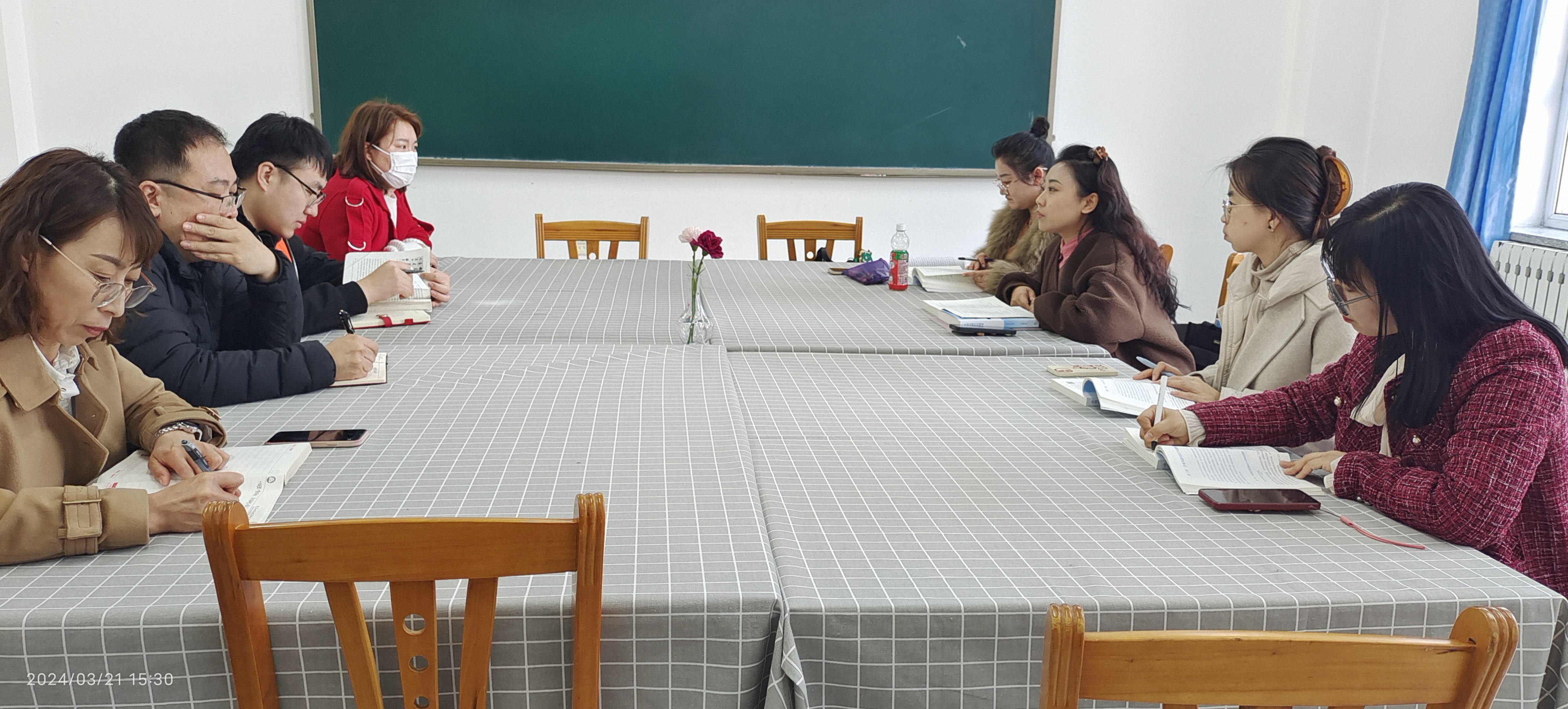 集体备课是集众人智慧,采众家之长,可以有效促进教学,实现资源共享。本次活动教研室自定学科主题,围绕第三章内容展开详细讨论,在交流中教师们纷纷踊跃发言,不管是经验丰富的老教师还是年轻的新教师,都积极地把自己融入到讨论的氛围中,针对备课主题,结合课标、教材特点、认真研究,最后整合大家的教学智慧,达成共识。