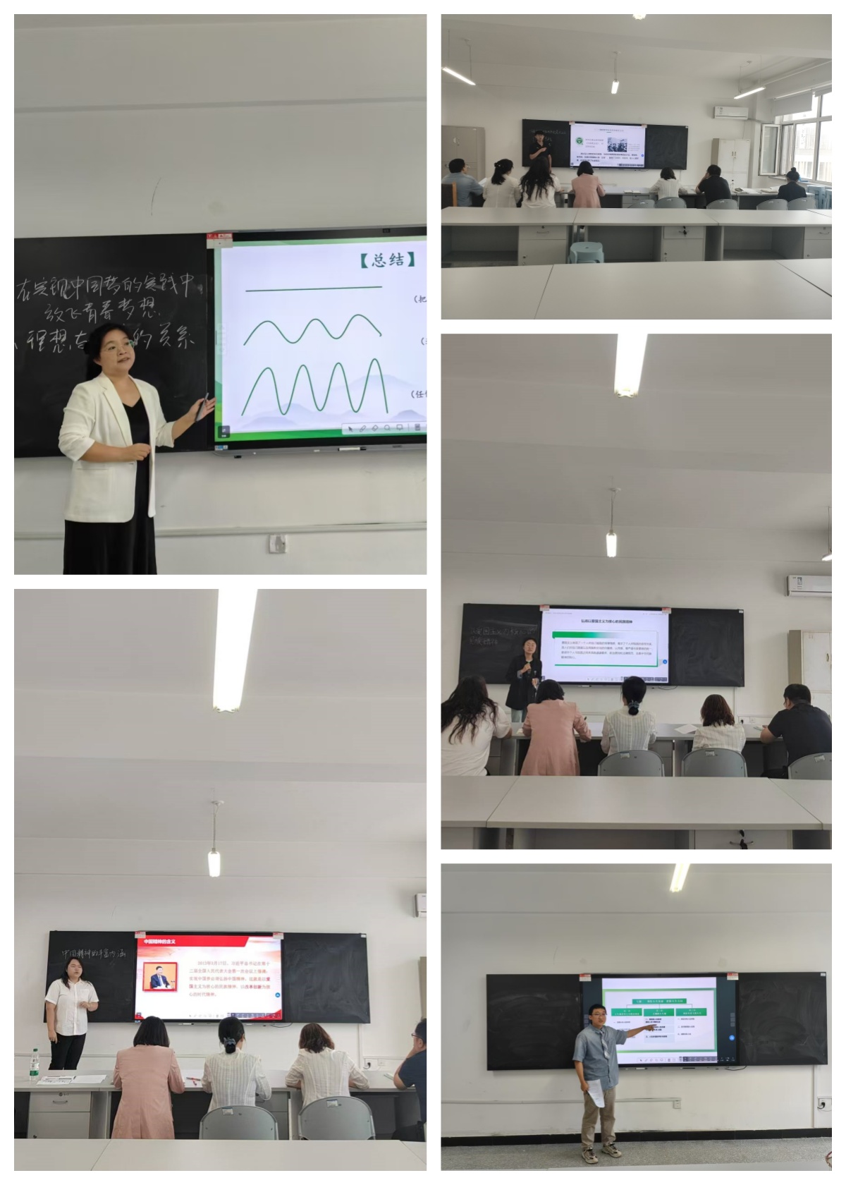 徐程、韩洋、谢淞楠、董一飞、候伟五位新教师围绕《思想道德与法治》课程的相关内容——“做新时代的忠诚爱国者”“历史虚无主义”“中国精神的丰富内涵”“人生价值的评价与实现”“科学把握理想与现实的辩证统一”等知识点,结合最新热点和经典案例,深入浅出地展开讲解。试讲中他们思路清晰,表达清楚,内容准备丰富充分,与上次试讲相比有很大进步。试讲结束后,听评课教师对每位试讲教师进行一一点评。他们在肯定教师们努力和付出的同时,也进一步提出改进提升建议。