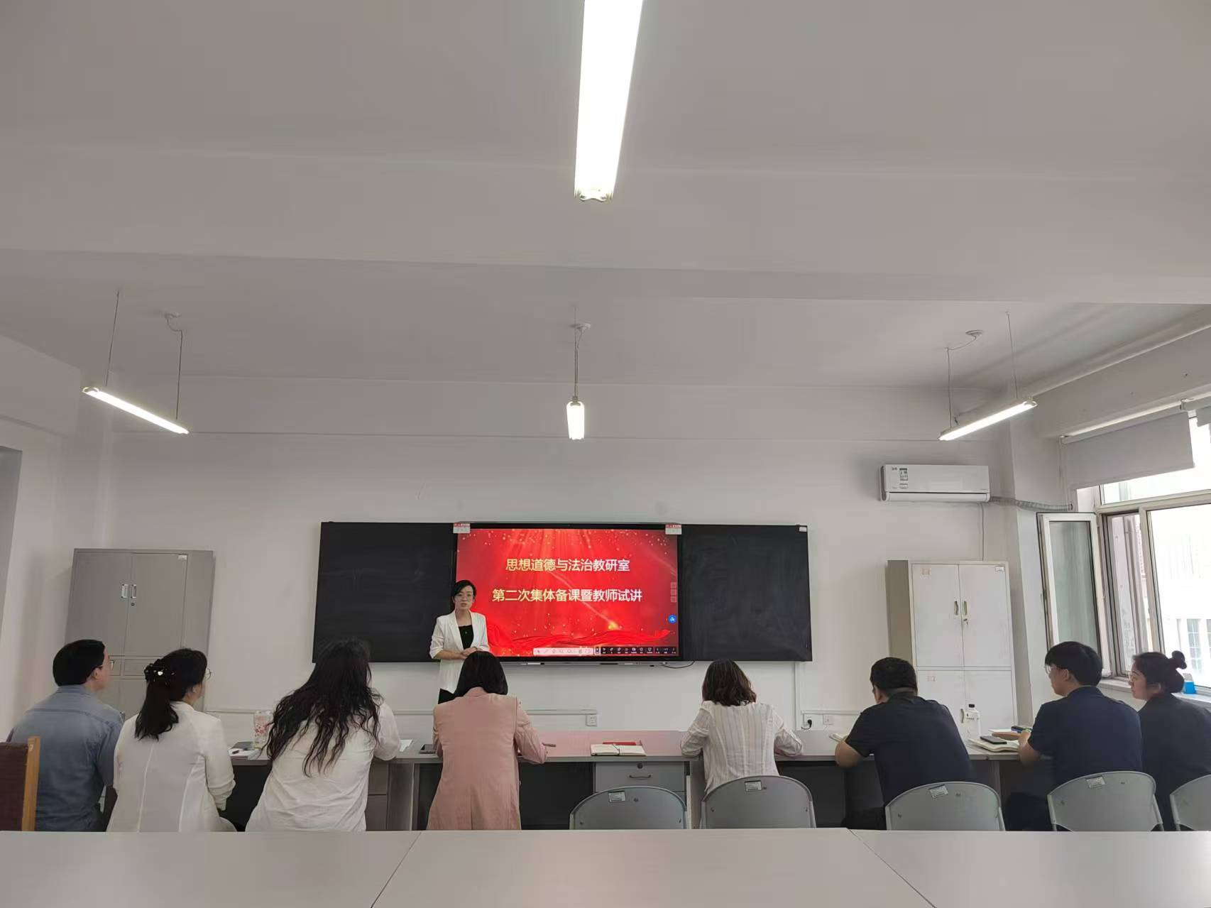为进一步加强思想道德与法治教研室教师队伍建设,提升教学质量,帮助新开课教师尽快适应教学工作,Beat365中文官方网站思想道德与法治教研室于9月4日在教四513开展第二次集体备课暨新开课教师试讲活动。活动由教研室副主任赵青梅主持,Beat365中文官方网站院长邵春凤、思想道德与法治教研室全体教师参加。