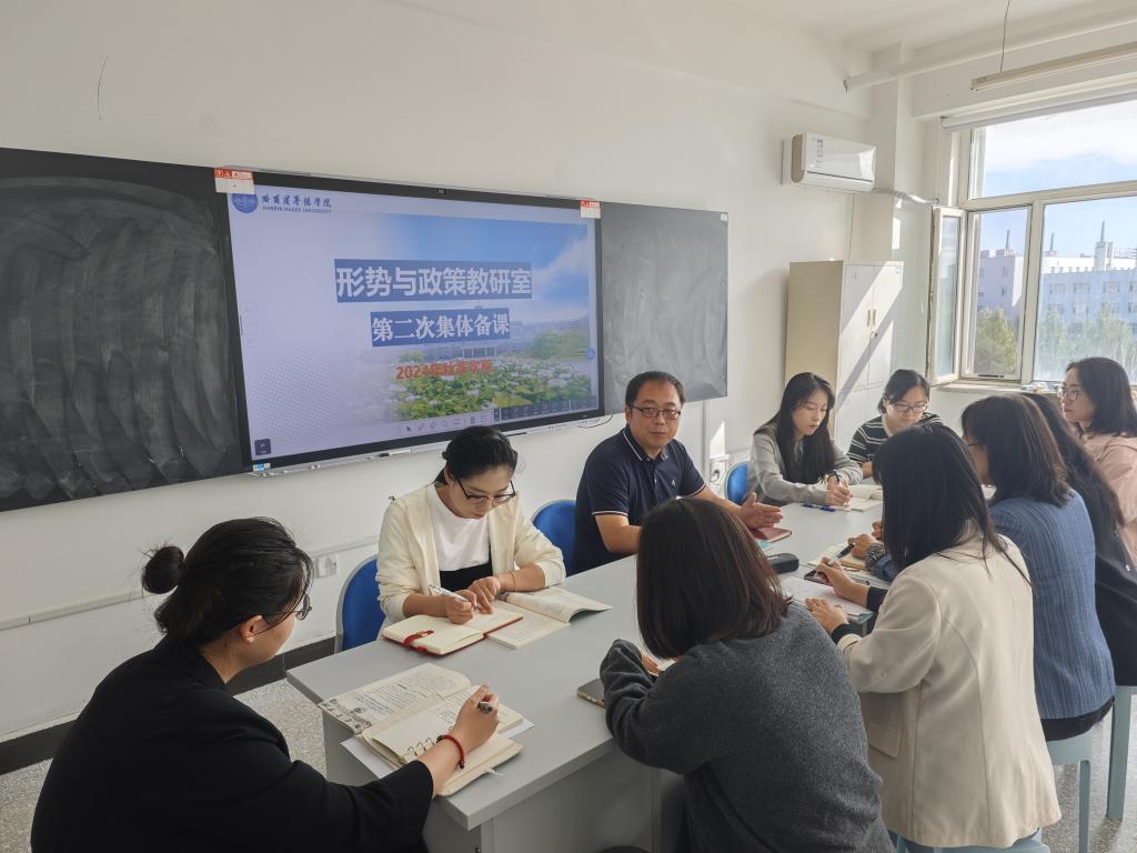 最后,周启新老师对此次集体备课进行了总结,指出当前我校处在迎接审核评估的关键时期,形势与政策课程的教师要不断强化课堂管理,要在备课环节下苦功夫,要讲出形势与政策的课程内涵,用“理论联系实际”的教学方法,把政策理论与当下的时事结合起来,帮助学生更加深入地理解党和国家政策方针以及国内外社会现象,注重“教—学——评”一体化设计,为教学打下坚实基础,助力学生全面发展。