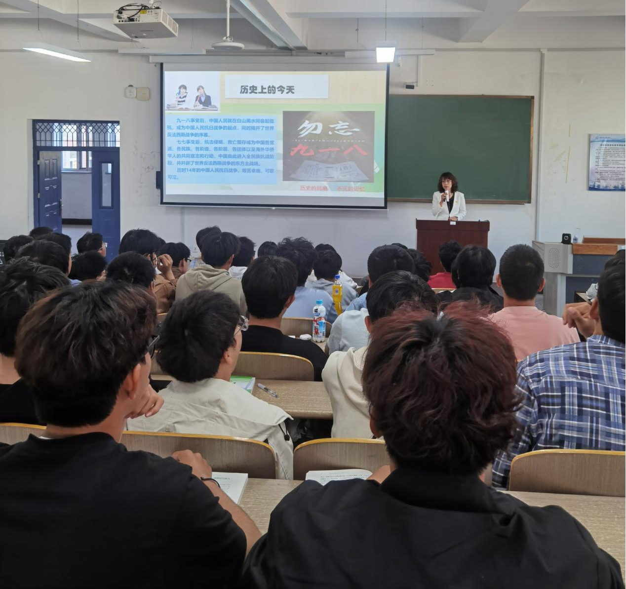 以“青春不老、中国正好——传承和弘扬爱国主义精神”为主题,结合“九·一八”事变爆发93周年纪念日,以龙江红色文化资源为依托,面向2024级3000余名新生讲述了那段屈辱而又难忘的历史,引用侵华日军第七三一部队罪证陈列馆出口标语“别回头,向前走,出口有光,有人间烟火,有国泰民安。别忘记,来时路,有民族苦难,有国仇家恨”。师生共同感悟中华民族安不忘危,治不忘乱,虽然战争的硝烟早已散去,但历史的回响从未停止,我们勿忘昨之苦难,无愧今天之担当,以史为鉴,开创未来!