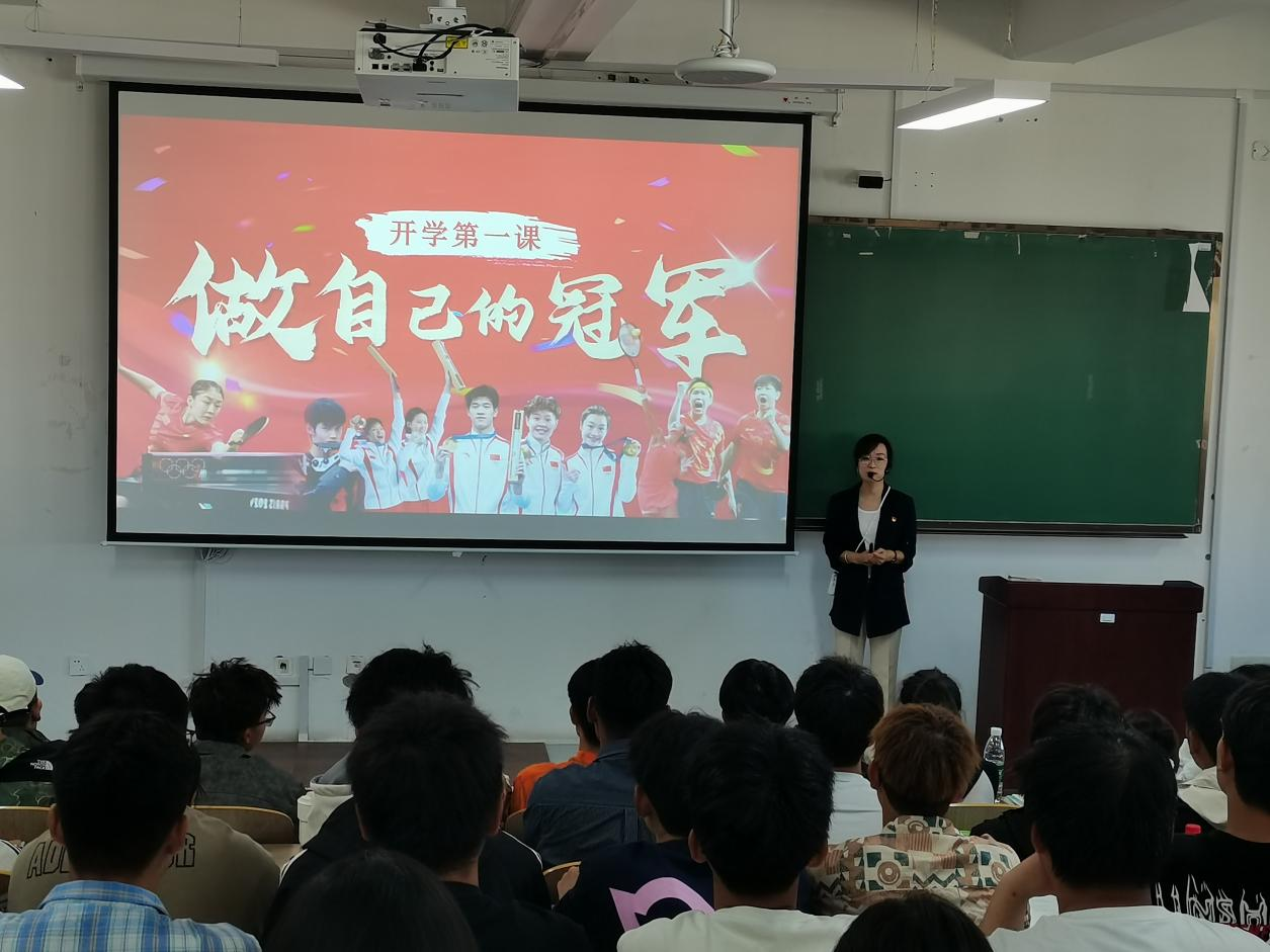 以“弘扬奥运精神,做自己的冠军”为主题,为2022级和2023级5000余名全校本科生讲授开学第一课。带领学生重温奥运赛事,讲述奥运健儿夺冠的精彩瞬间,并以郑钦文、潘展乐、全红婵等“00后”运动员的事迹为例,深入浅出的讲述中国健儿们在“更快、更高、更强、更团结”的奥林匹克格言感召下,用汗水铸就辉煌,以坚韧缔造奇迹,奋发向上、不断进取的精神力量,激励我们华德学子学习和弘扬奥运精神,以爱国为底色,以奋斗为引擎,用榜样之光照亮奋进之路,将自己的梦与中国梦有机结合。