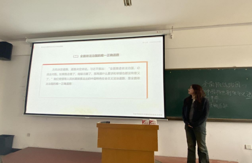 首先,教研室副主任胡凤娇针对《习近平新时代中国特色社会主义思想概论》课程中第九专题“全面依法治国”的教学内容做了示范讲解,着重分析了课程内容的重难点;教研室全体教师围绕课程案例的选择进行了探讨,力求选取的案例更加贴近实际、贴近学生、贴近生活。