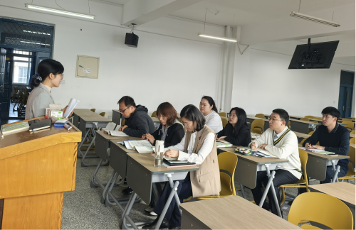 其次,教研室进行了充分的教学研讨。董一飞、韩洋、谢淞楠、徐程四位新教师提出了近期教学中的疑问,如:教学重难点的设计思路、教学案例的选取、如何加强课堂管理等。围绕这些疑问教研室的老师们共同探讨并分享了自己的经验并给出了指导性的意见和建议。