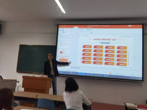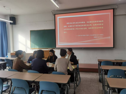 首先,胡凤娇强调要高质量完成授课任务,要做好课前的充分准备,针对《习近平新时代中国特色社会主义思想概论》课程中第十二章“建设社会主义生态文明”和第十三章“维护和塑造国家安全”的教学内容做了系统阐释,着重分析了章节的教学重难点问题,强调一定要把学生关心的问题掰开揉碎,讲清讲透,选取贴近学生实际生活的案例,解决学生的思想困惑。