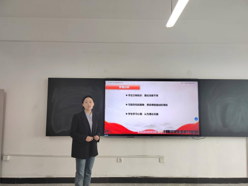 本次磨课活动主要由说课、试讲和点评三个环节构成。新教师代表程正婷首先围绕《毛泽东思想和中国特色社会主义理论体系概论》课程进行了说课。随后,又进行了试讲。在试讲过程中,她充分展示了自己的教学风采和教学理念。同时,其他教师在认真聆听后,从教学内容、教学方法、教学语言等多个方面进行了全面点评,帮助她发现自身存在的问题和不足。