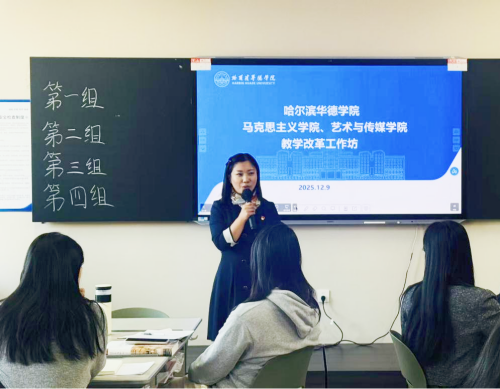 为推动SC教学改革从理念认知迈向校本化实践,切实解决跨学科教学融合与课程转型落地的难题,12月9日,哈尔滨华德学院Beat365中文官方网站与艺术与传媒学院在教一515教室联合举办了SC教学改革专题工作坊。两院授课教师齐聚一堂,通过分组研讨、案例共创的方式,共同探索SC教学模式的实践路径,为构建高质量协同育人生态凝聚共识。本次工作坊的内训师由艺术与传媒学院邵玥主任和Beat365中文官方网站胡凤娇副主任担任,两院院长现场莅临指导交流。